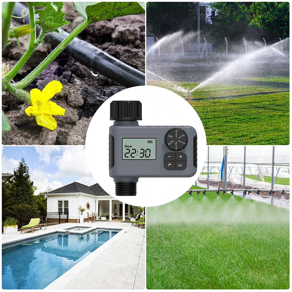 - Mit seiner wasserdichten und auslaufsicheren Funktion eignet sich der Timer für das Gartenbewässerungssystem ideal für Schwerkraft-Tropfbewässerungssysteme im Außenbereich, Gartenbewässerung, Rasensprengersteuerungen, Gewächshaus-Nebelsysteme, Pools usw.
