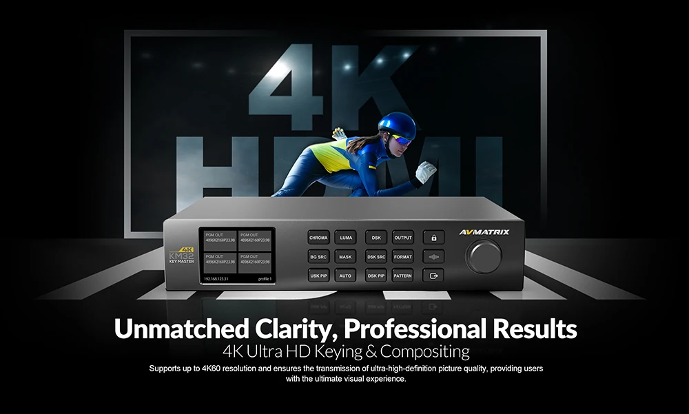 AVMATRIX KM32-4K 3-Kanal 4K HDMI Echtzeit-Chroma-Key-Master One-Touch Smart Keying Dual-Plattform-Steuerung unterstützt DSK & PIP