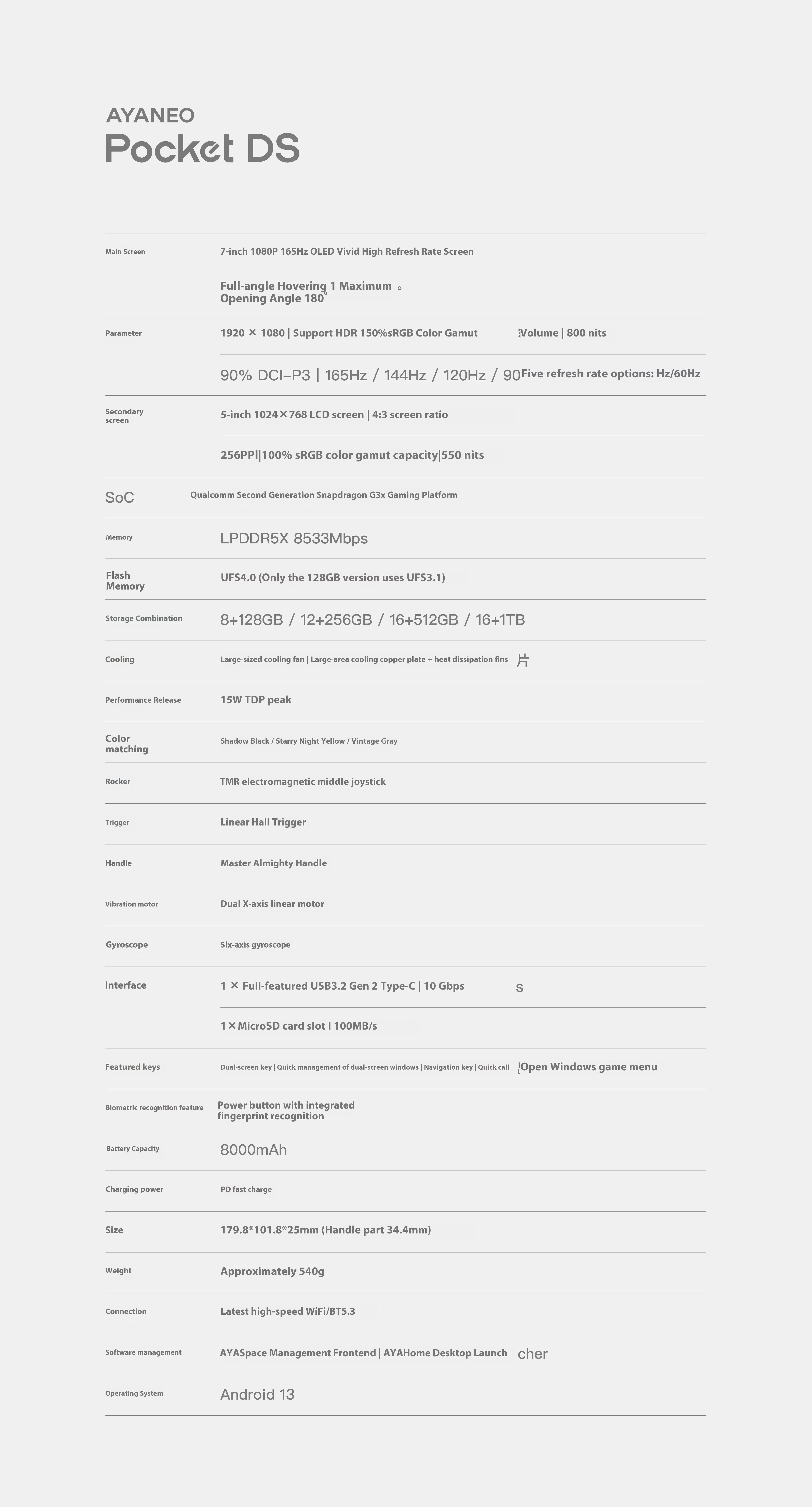 AYANEO Pocket DS-Spielekonsole, 7 Zoll, 1080P, 165 Hz, OLED-Bildschirm, 8000 mAh, tragbare Android-Handheld-Konsole, Dual-Screen-Flip-Spielmaschine