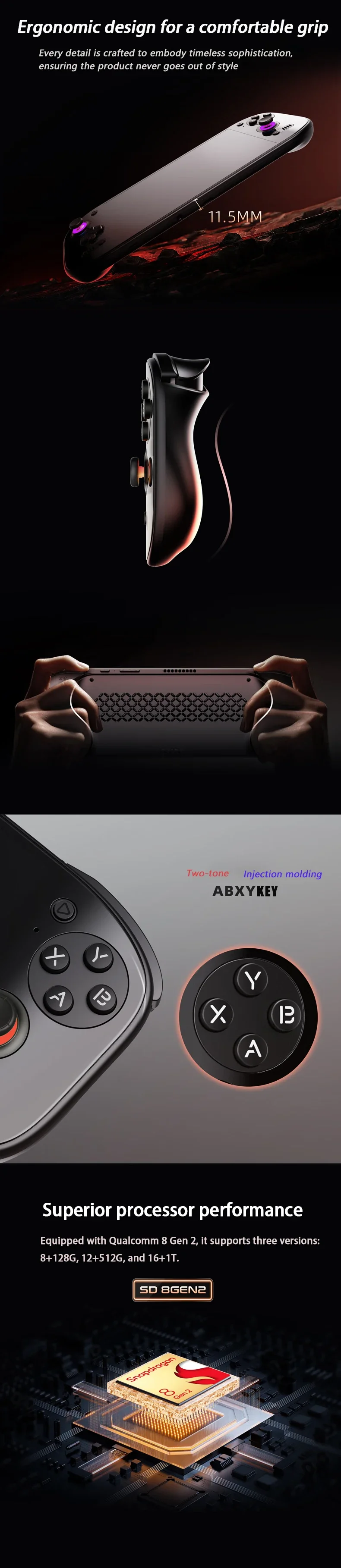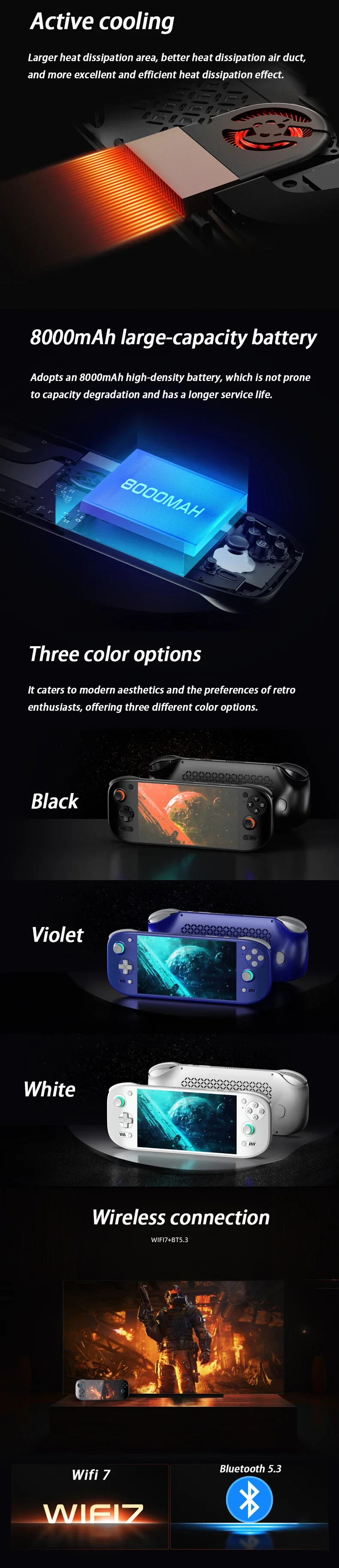 Arger battery for stronger battery life, active cooling to prevent overheating, frequency reduction, or hand burning.