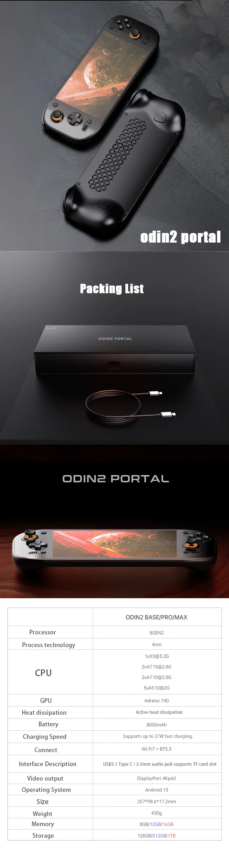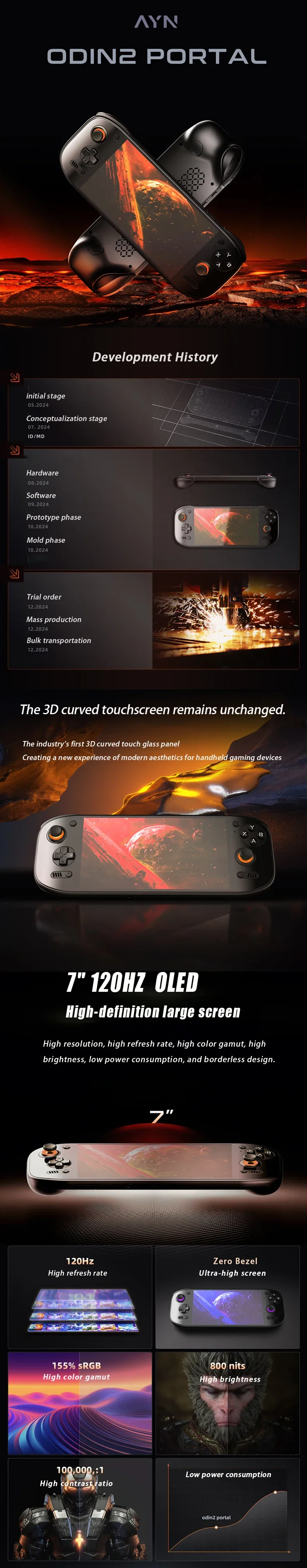Ayn Odin 2 Portal Retro Handheld Game Console, 7 inch 120Hz Screen, 8000mAh 8 Gen 2,128G ,Retro Video Game Consoles For Gifts