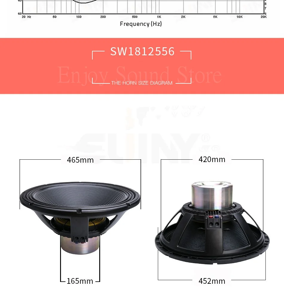 Die Neodym-Magnet-Basseinheit ist leicht und ihr Schalldruck wird speziell für 18-Zoll-Profi-Bühnen-Line-Array-Sound, Bühnenauftritte und andere Anlässe verwendet