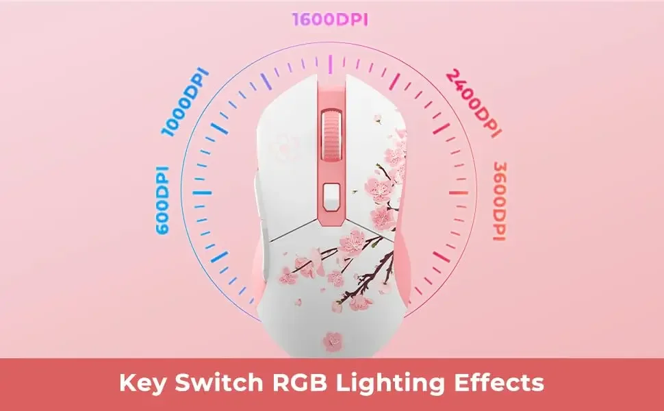 DAREU Sakura Pink Wireless Wired Gaming Mouse Dual-Mode Rechargeable 7 Buttons DPI RGB and 7 Adjustable DPI for PC Notebook Mac