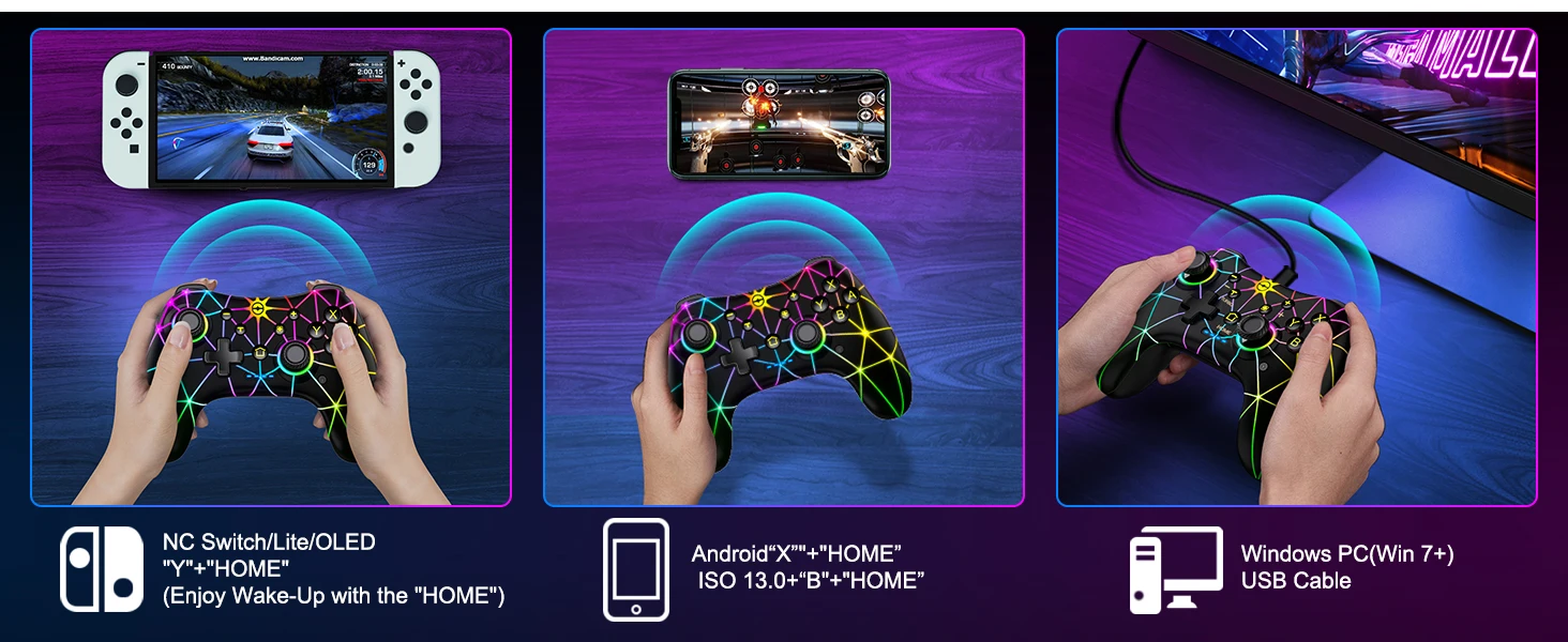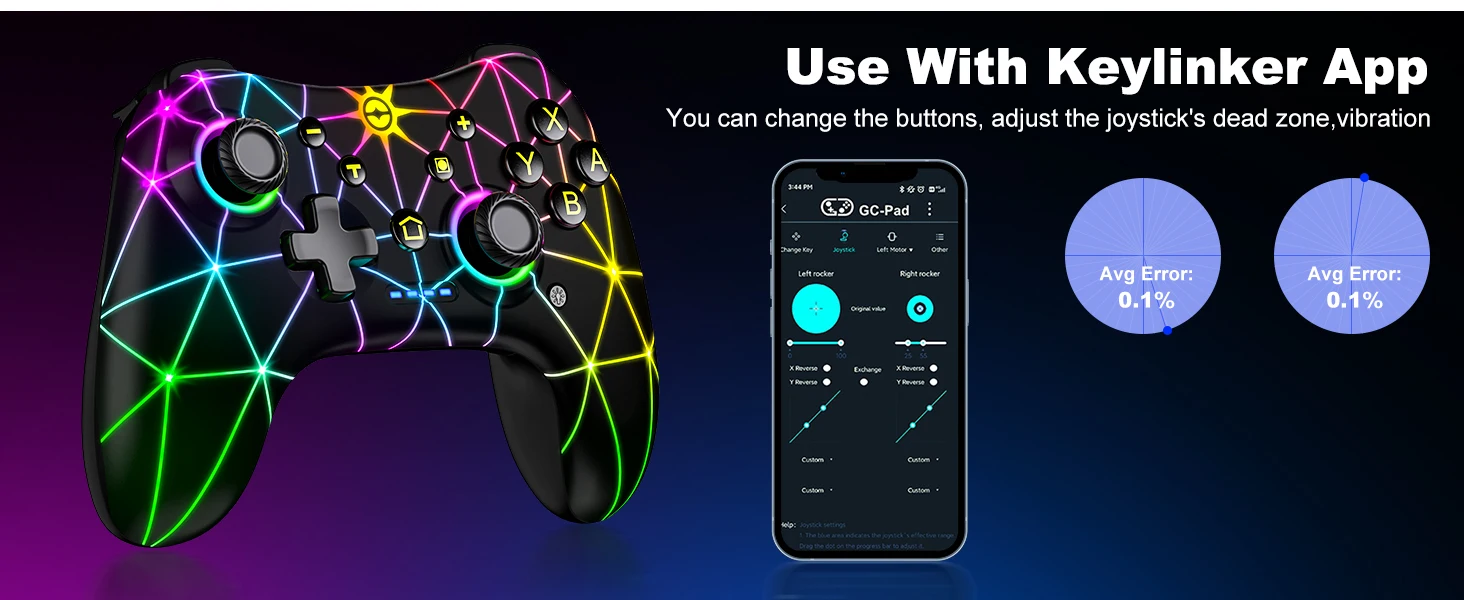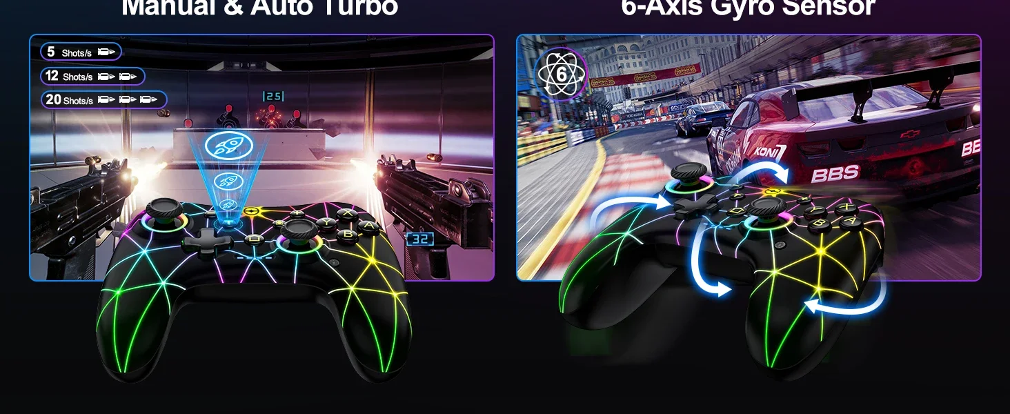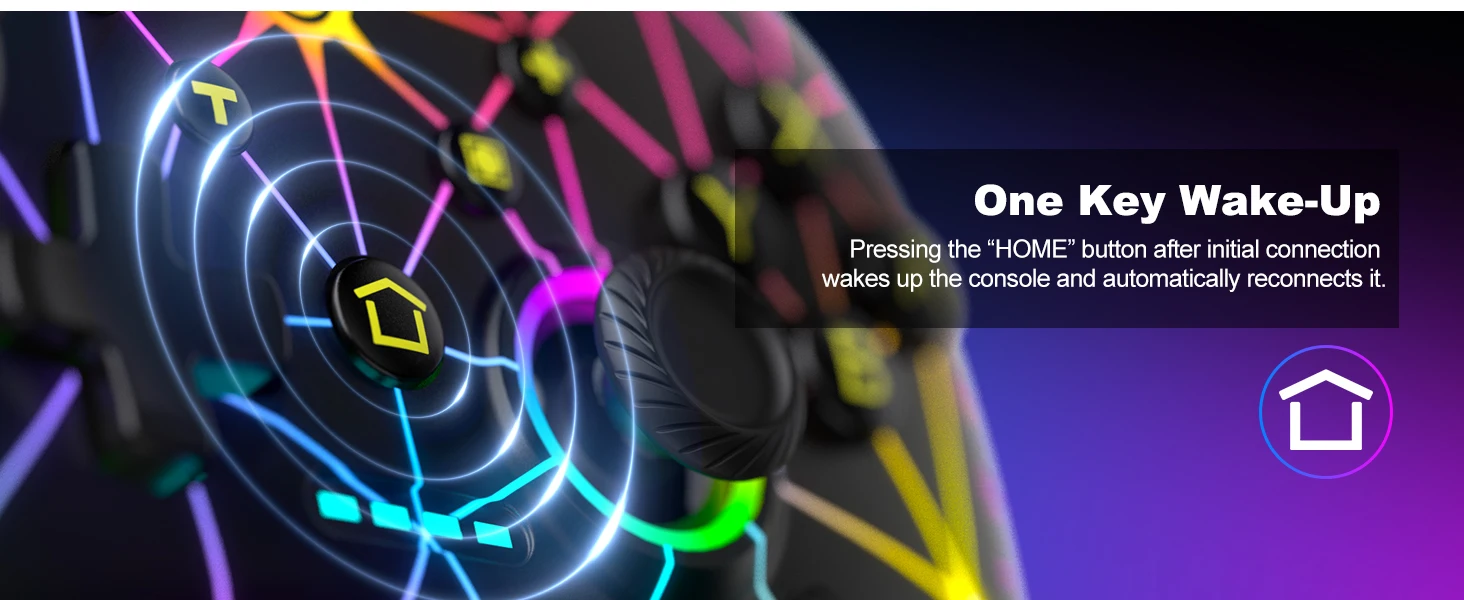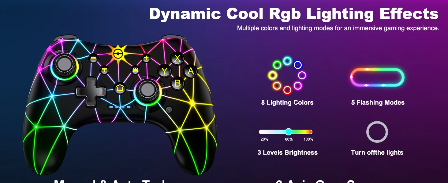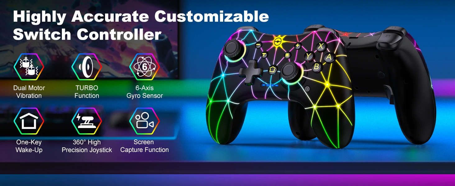 DinoFire Wireless Controller RGB For Nintendo Switch OLED / Lite Multi-function Pro Gamepad with 800Mah Battery Turbo Function