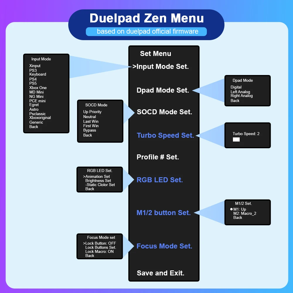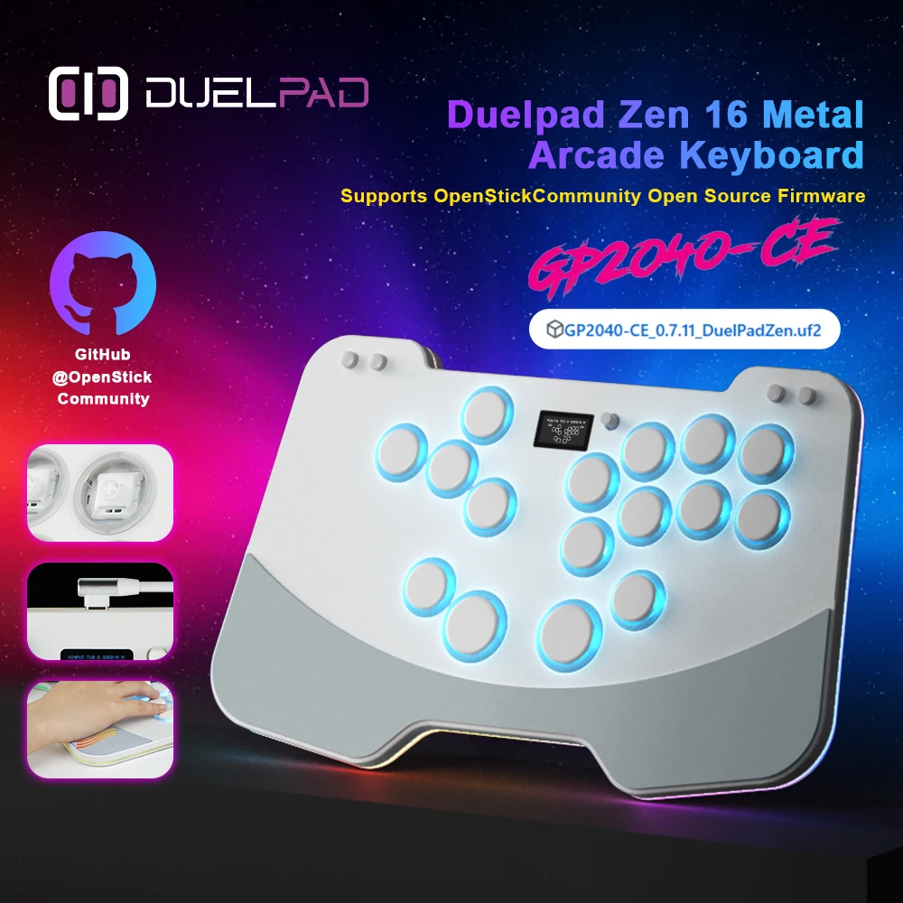 Duelpad Zen Metal Game-Tastatur-Controller, ergonomischer, hebelloser Ergo-Split-Arcade-Controller mit allen Tasten/Stickless für PC/NS/PS4