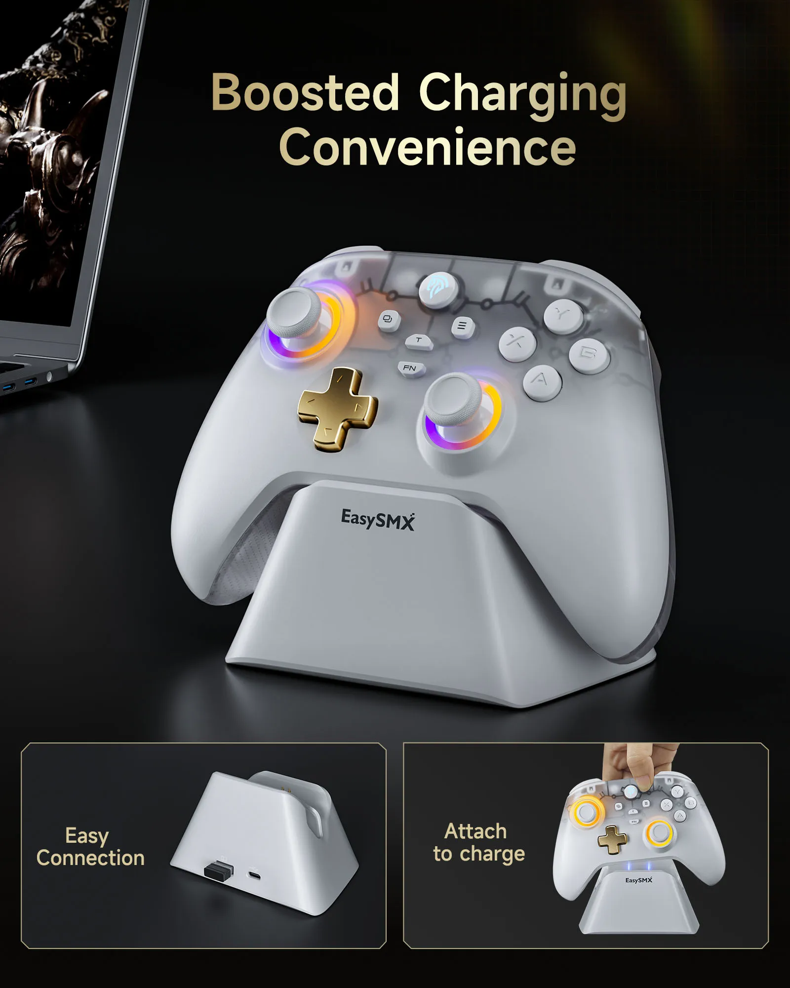 EasySMX D05 Wireless Gamepad for Nintendo Switch PC with Charging Dock RGB Hall Effect Joysticks Game Controller for Windows
