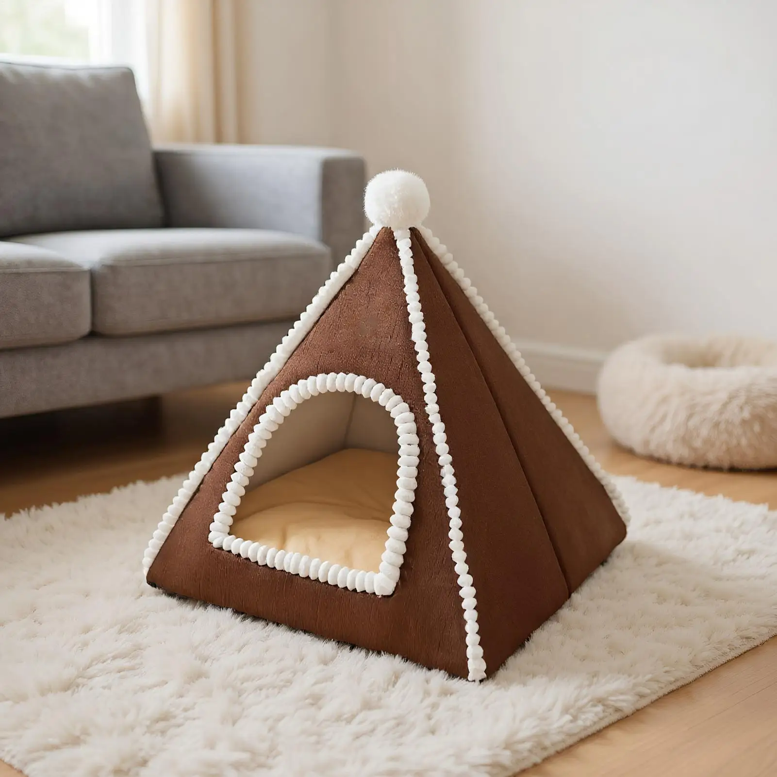 5. Neutrale Farbharmonie: Dieses geschlossene Katzenbett präsentiert eine raffinierte Zeltform und gedämpfte Töne, die die Kompatibilität mit minimalistischer Ästhetik gewährleisten und gleichzeitig die allgemeine Attraktivität Ihrer Wohnumgebung verbessern