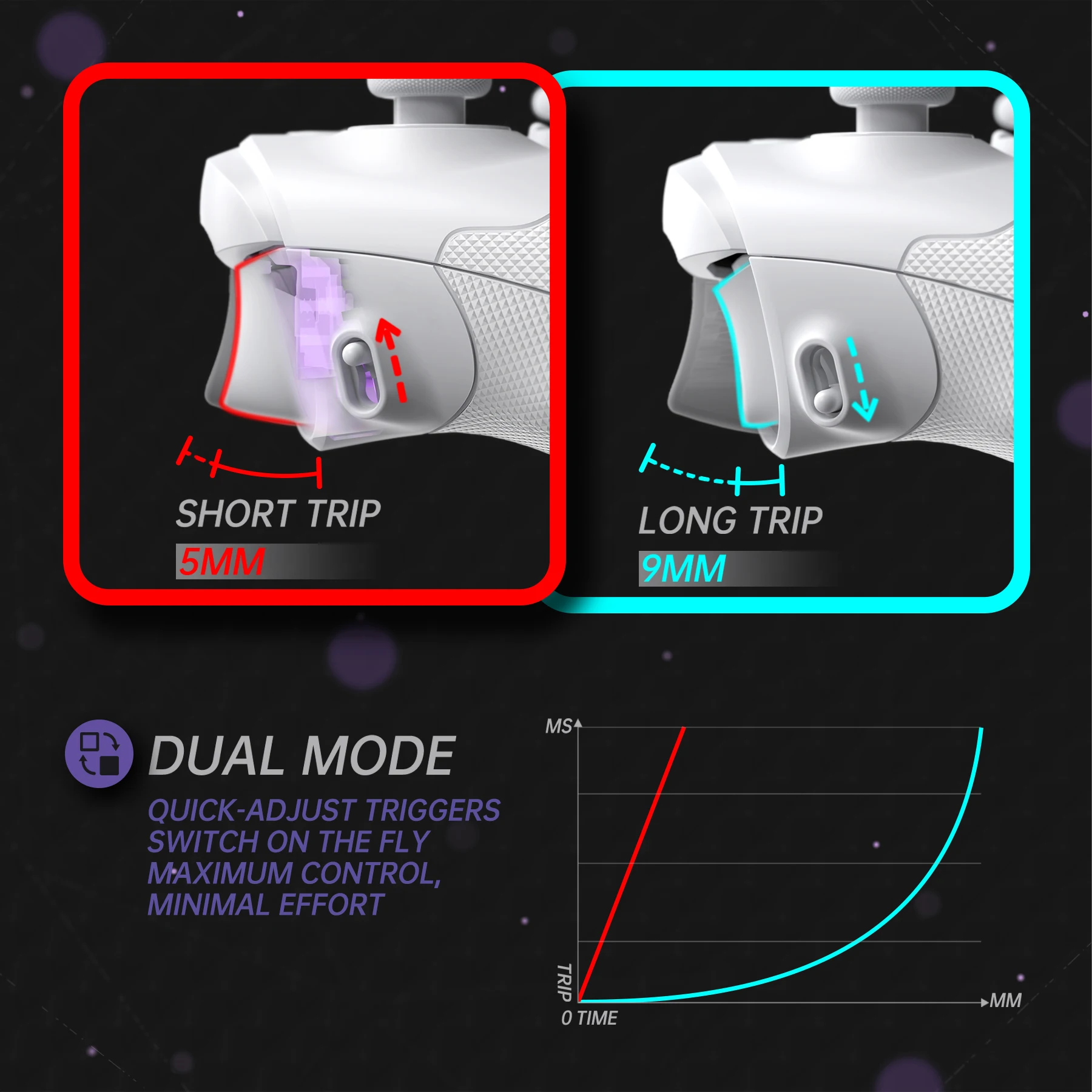 Ausgestattet mit einem Trigger-Stop-Kit, das den LT/RT-Weg von 9 mm auf 5 mm reduziert, was eine schnellere Reaktion und verbesserte Spielpräzision ermöglicht und Ihren Standard-Controller in ein professionelles eSports-Elitegerät verwandelt.