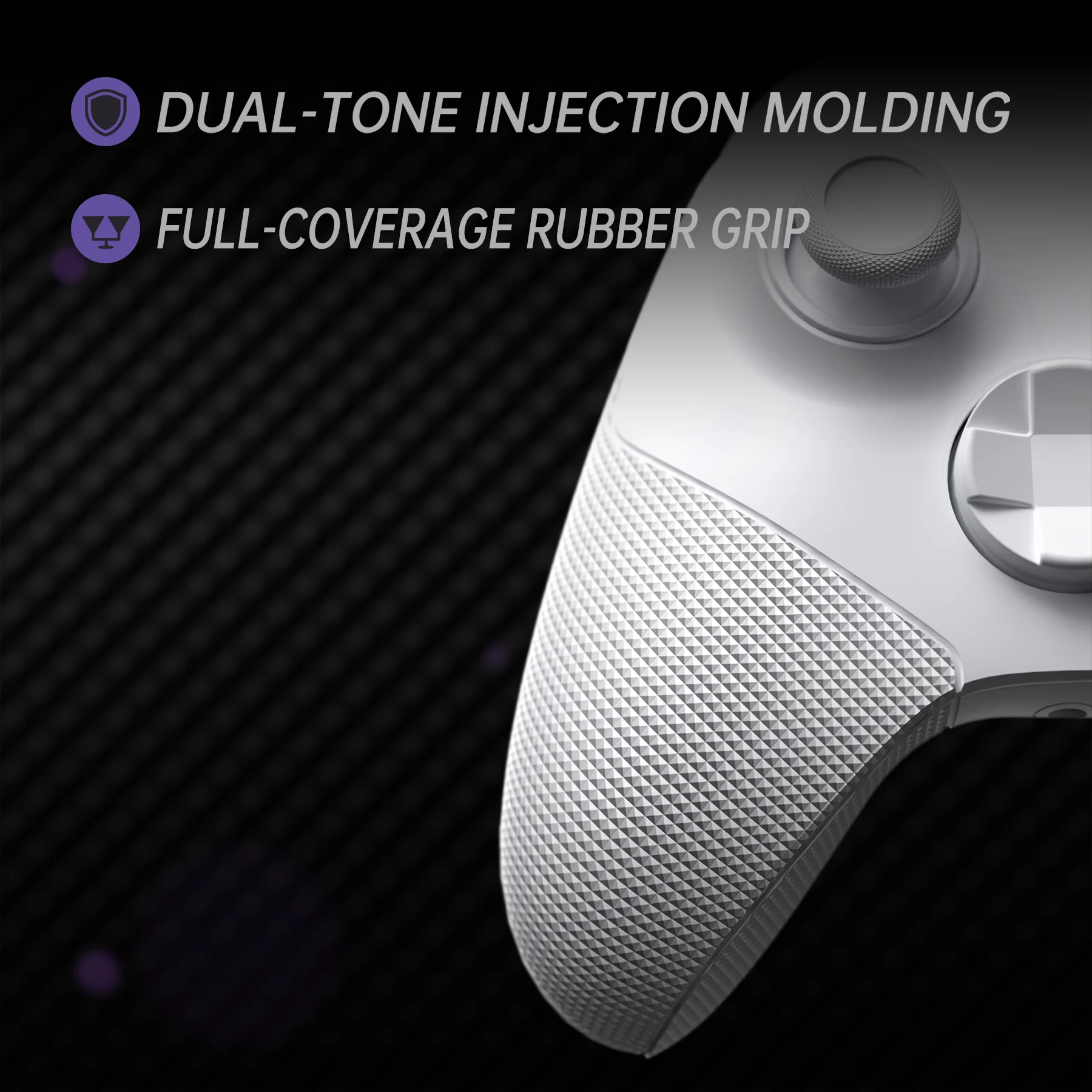 Die gummierte Schale mit ergonomischem 3D-Griff in Diamantstruktur erhöht den Komfort, verbessert die Kontrolle und verleiht Ihrem Controller mehr Stil.