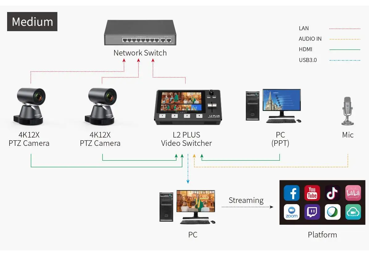Sie können zwei 4K12X für mittleres Live-Streaming und drei 4K12X für