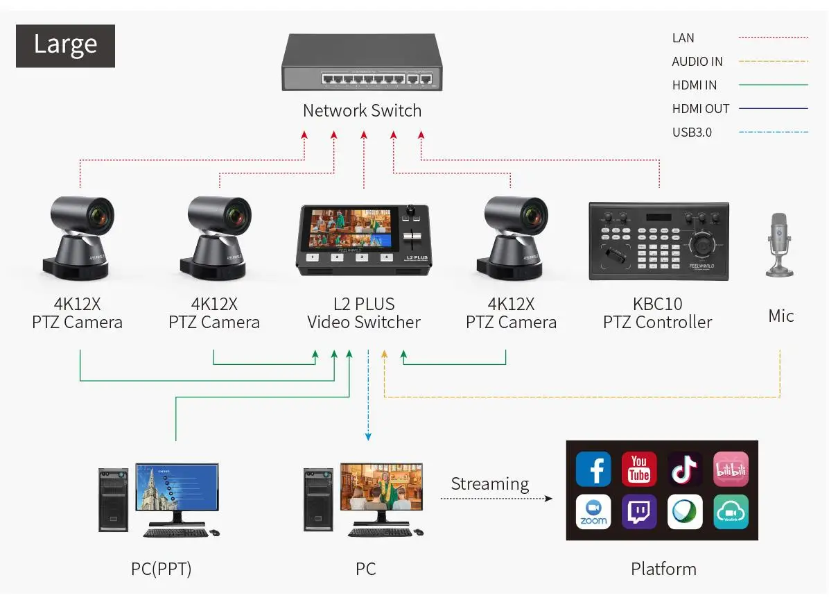 Große live-streaming.Verwendung mit FEELWORLD L2 PLUS video switcher, kann