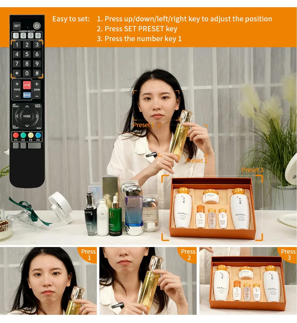 Die Kamera kann an der Wand/auf einem Stativ/auf dem Schreibtisch installiert werden, um Nahaufnahmen für jede Ihrer Live-Videoproduktionen aufzunehmen.