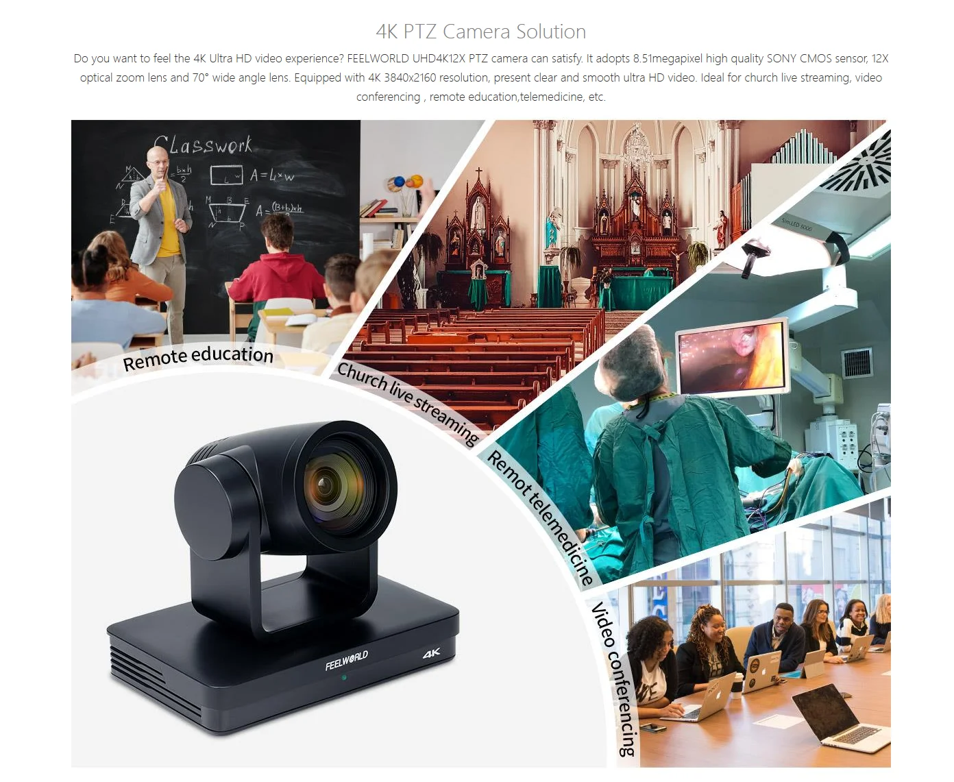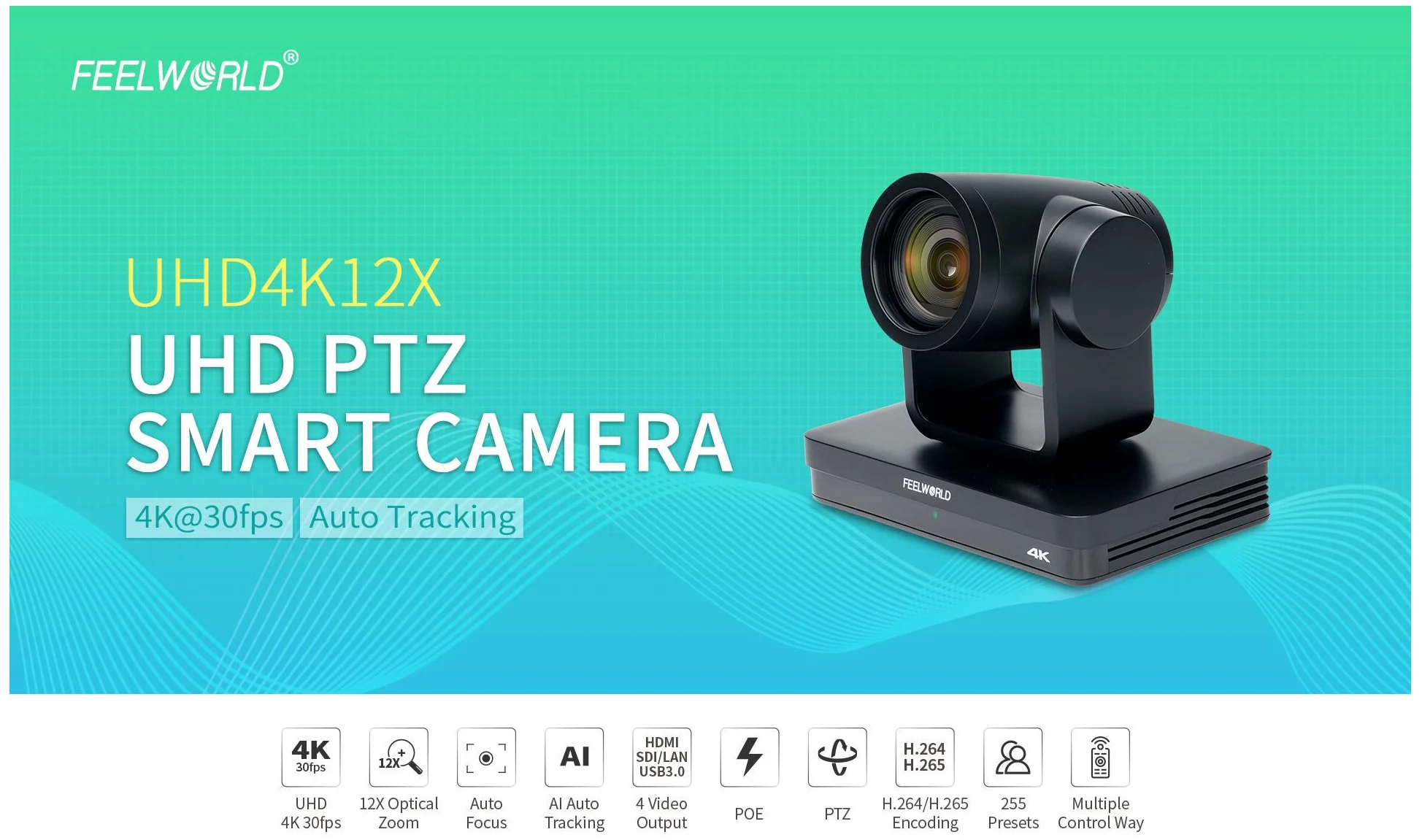 FEELWORLD UHD4K12X-Kamera, mehrere Videoausgänge, USB-PoE-Unterstützung, 12-facher optischer Zoom, Autofokus, SDI, HDMI, IP, 4K@30FPS, 4K-PTZ-Kamera