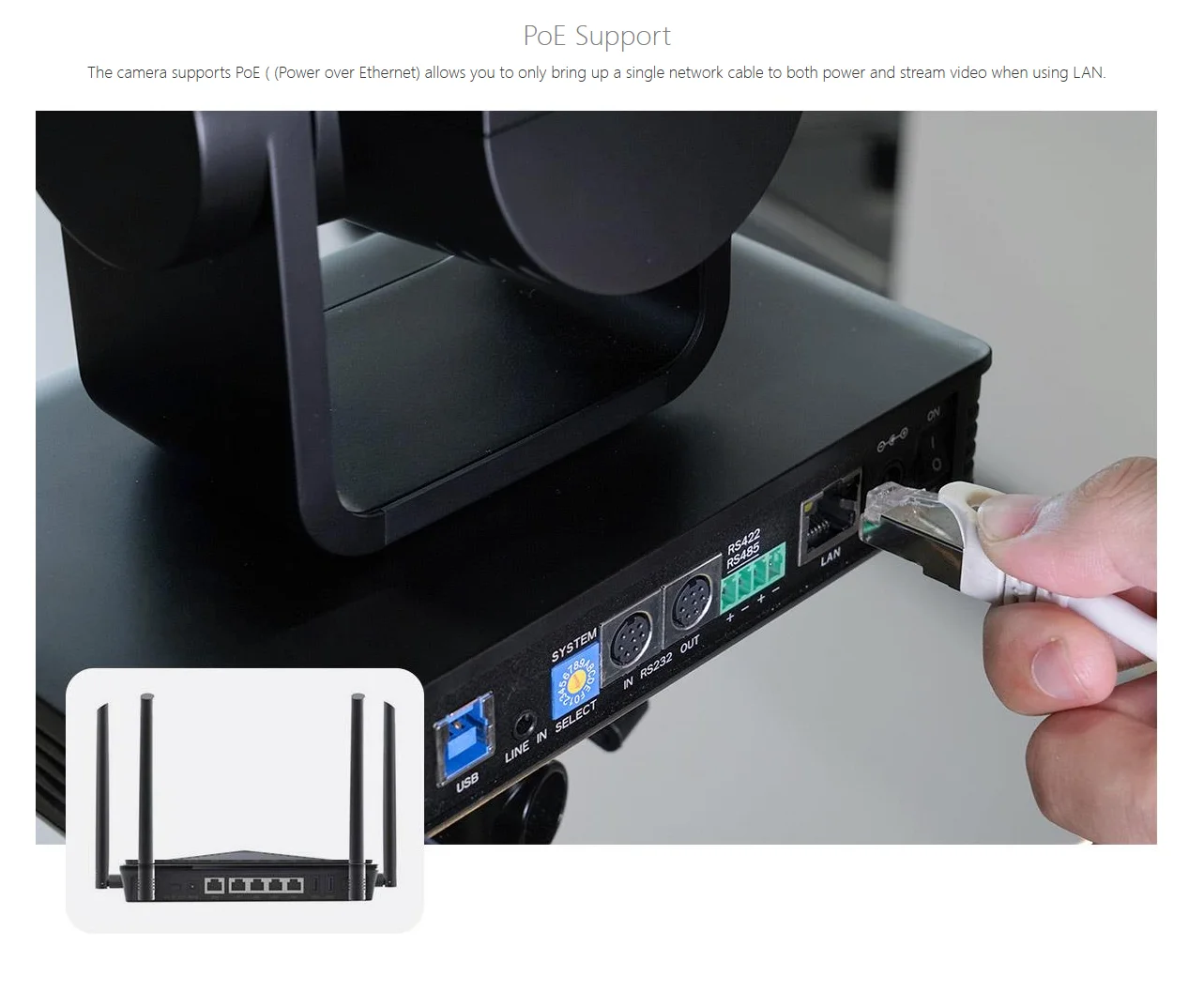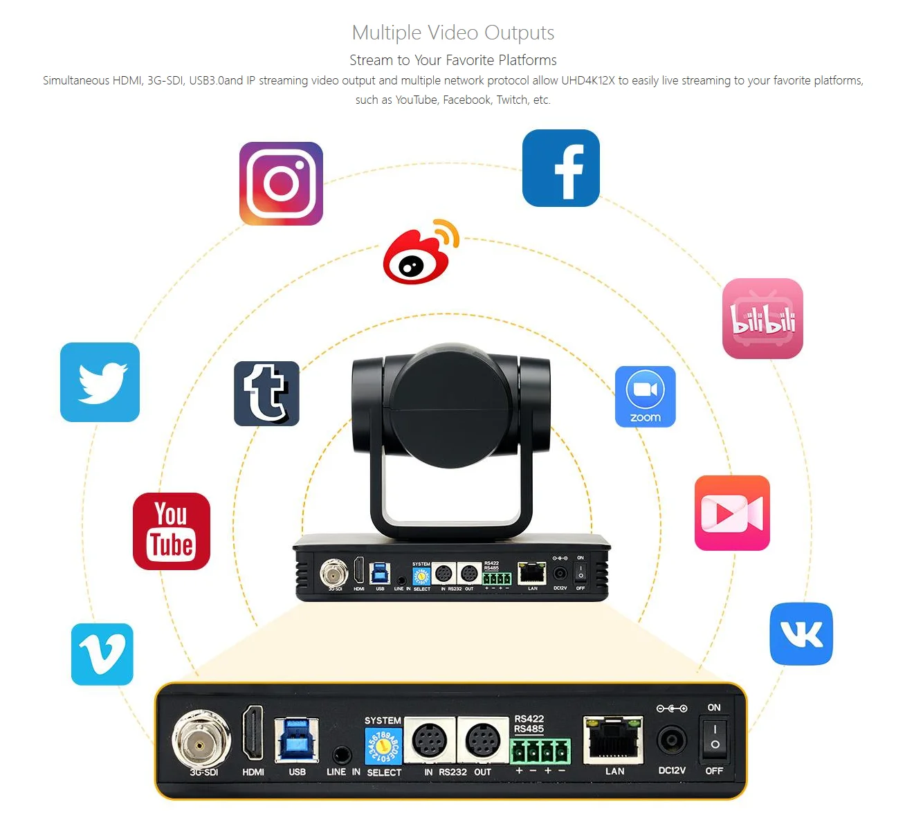 Videoausgang : HDMI, 3G-SDI, USB 3.0, LAN (unterstützt PoE)