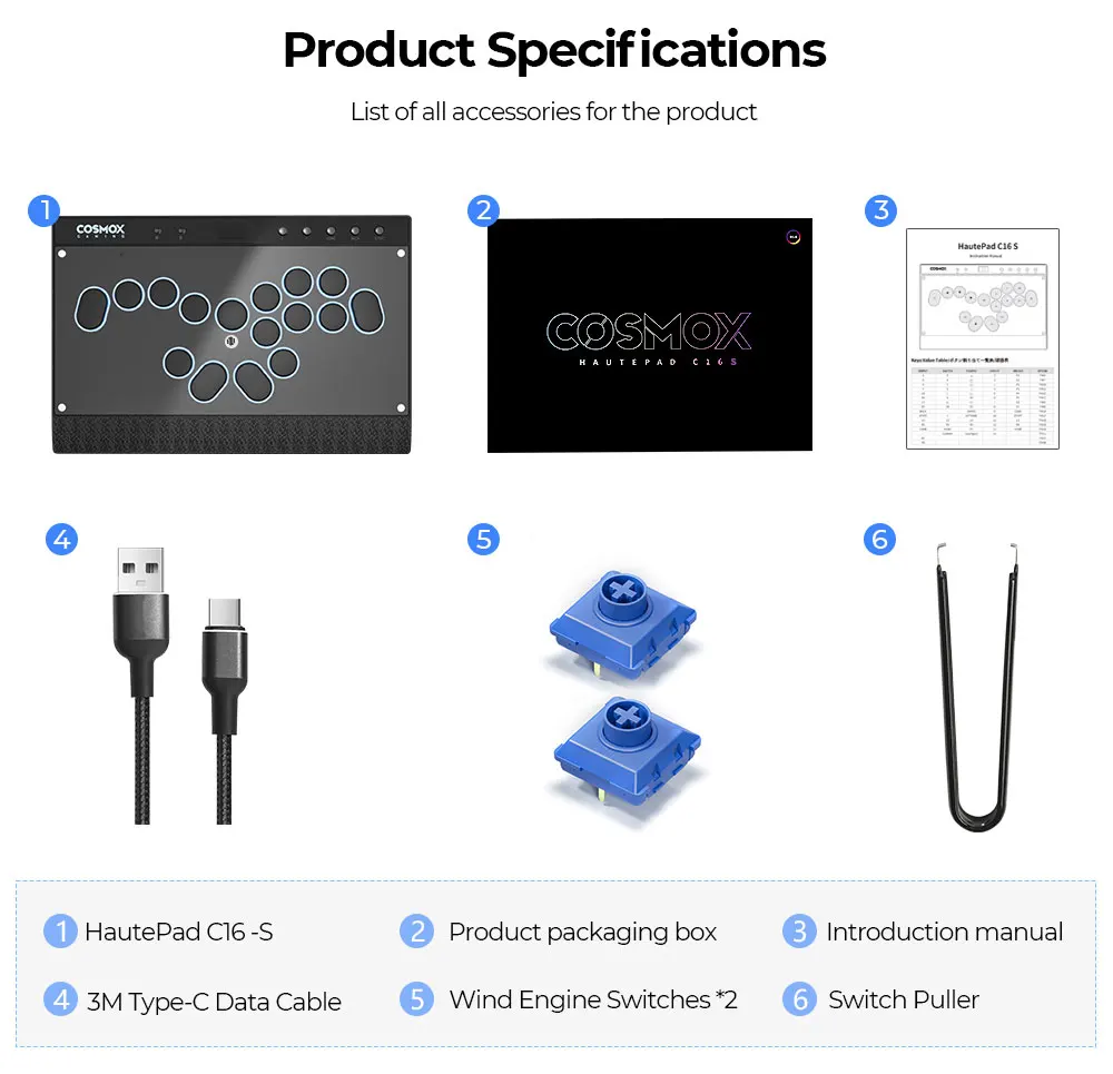 Haute42 Magnetic Stickless Arcade Controller Keyboard C16-S Hitbox Leverless Controller For PC/PS4/PS5/Switch2/Switch Fight Stick Hitbox