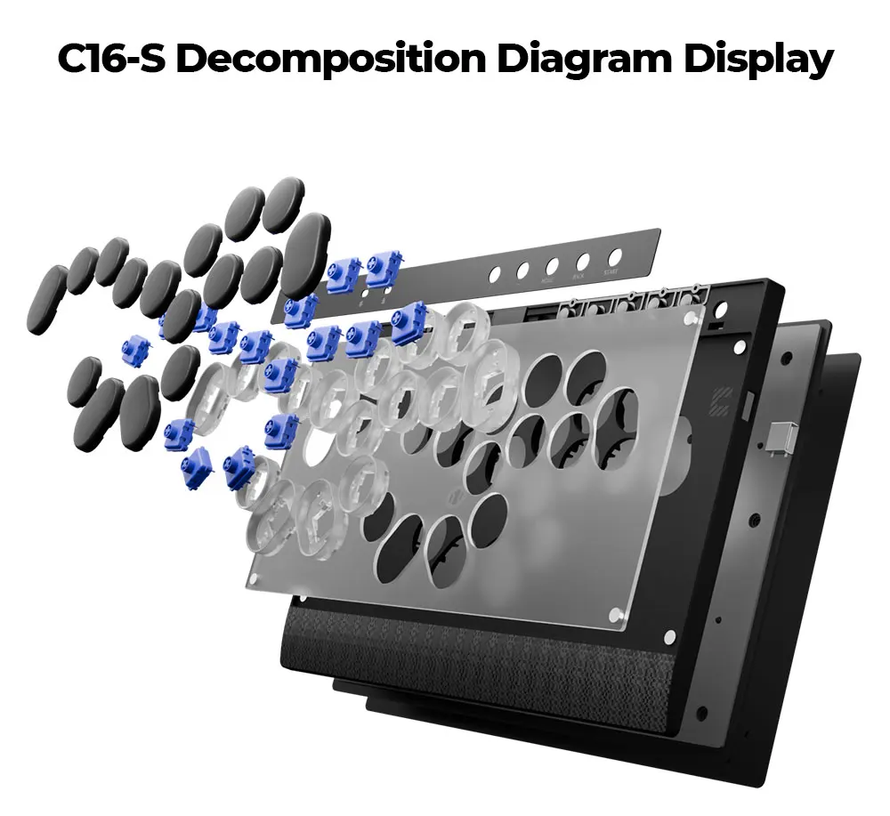 Haute42 Magnetic Stickless Arcade Controller Keyboard C16-S Hitbox Leverless Controller For PC/PS4/PS5/Switch Fight Stick Hitbox