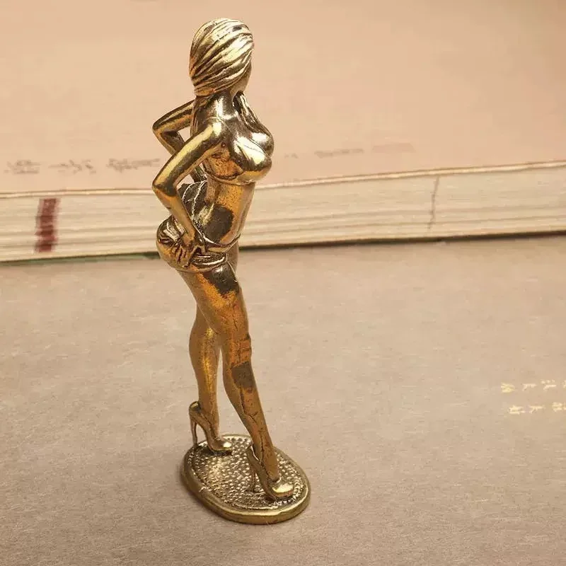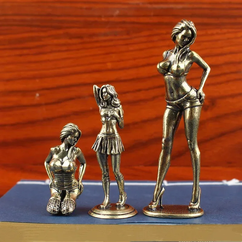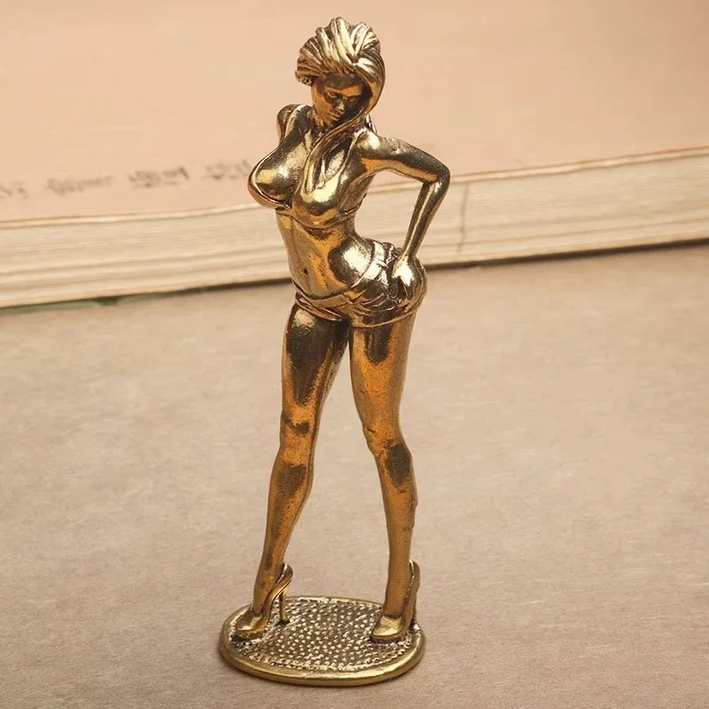 Solid Copper Woman Statue Bikini Women Brass Figurines Sexy Girl Woman Statuette Beauty Crafts Collection Model Gifts For Friend