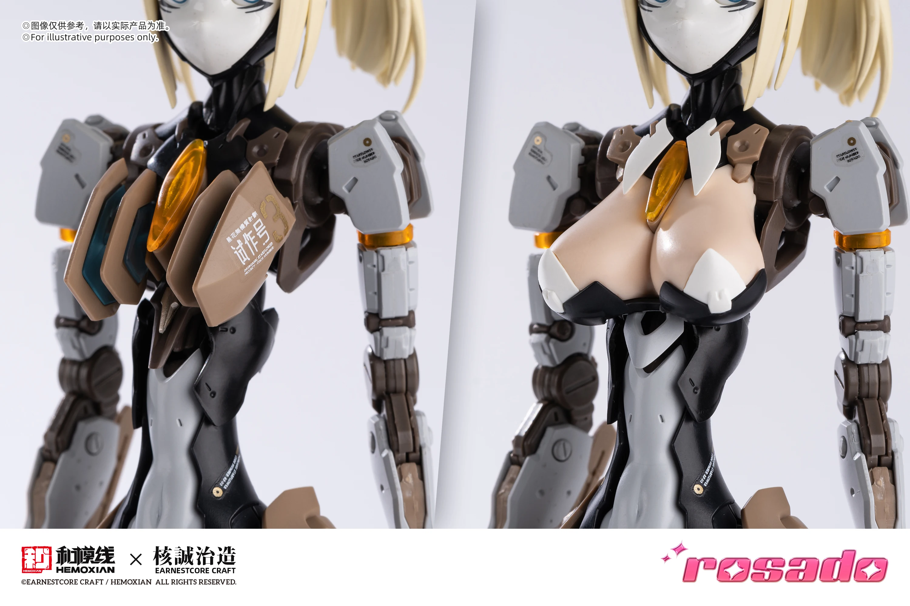 2. Dual system of "Human Mimicry" and "Combat Form" for the main body: Equipped with three sets of head parts, the human face and the mechanical face, with a magnetic attraction structure for portable replacement. One pair of mechanical breast and one pair of fleshy breast, which can be directly replaced by plugging and unplugging.