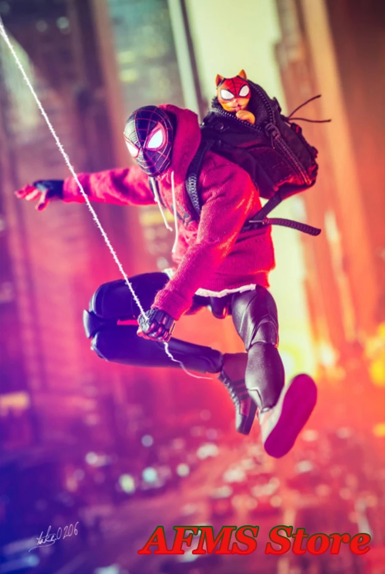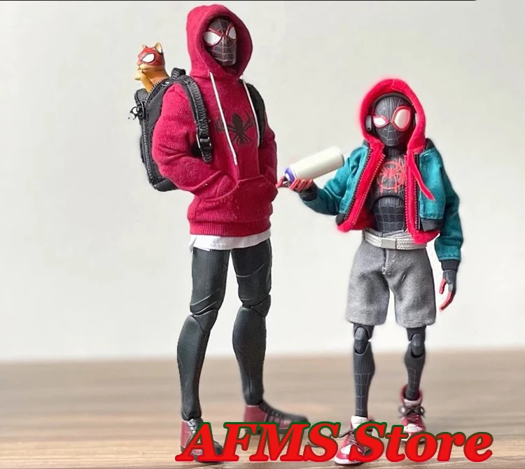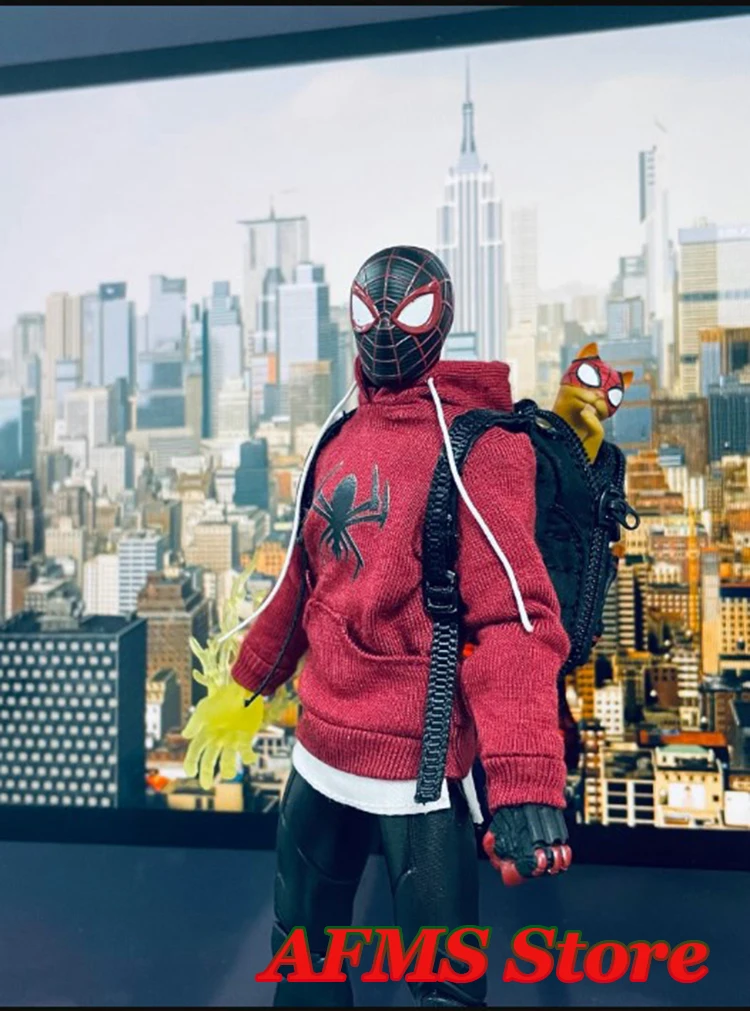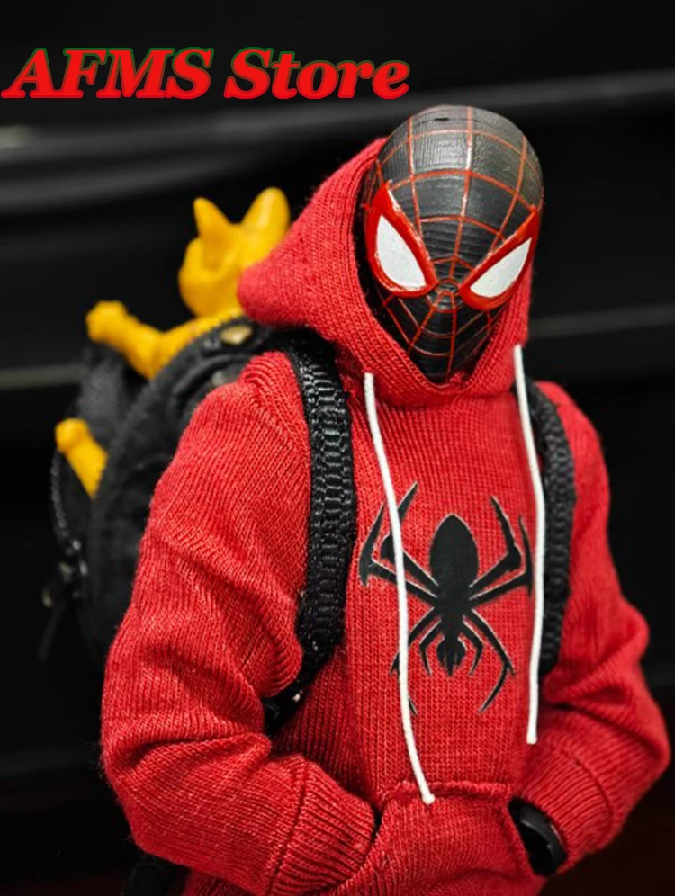 1/12 Men Soldier Miles Cosplay Clothes Long Sleeve Print Hoodie Black Backpack Sneaker For DIY 6" Spider Boy Action Figure Body