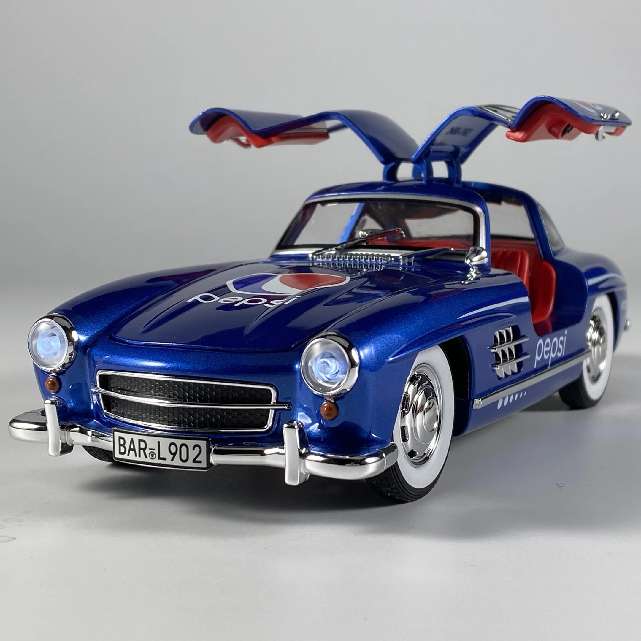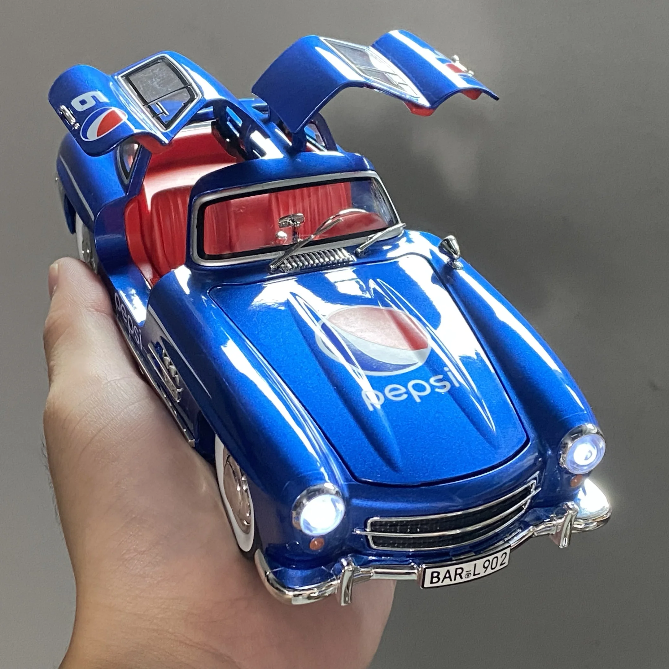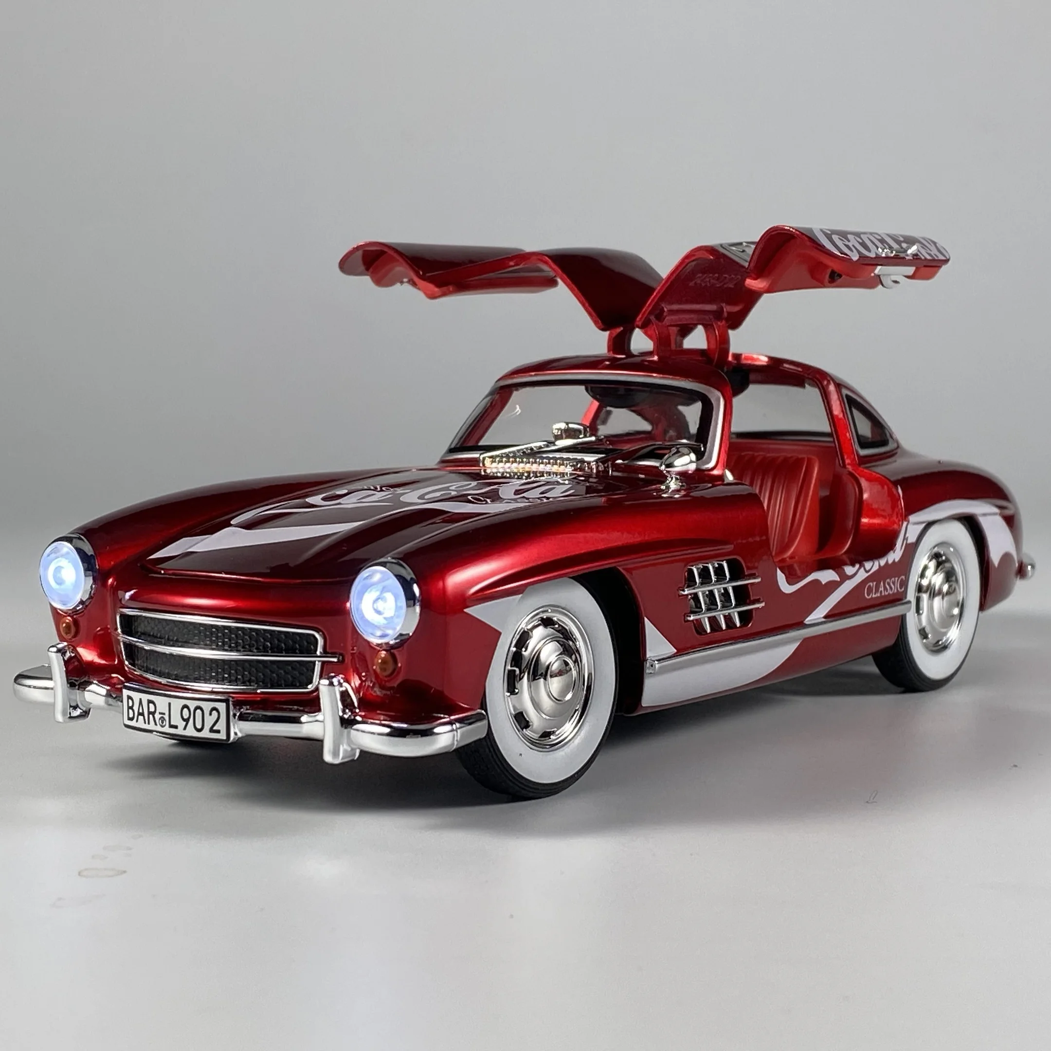 1:24 Benz 300SL Coca Cola Pepsi Cola Classic Vintage Car Alloy Diecast Model Car Sound And Light Pull Back Collection Hobby Gift