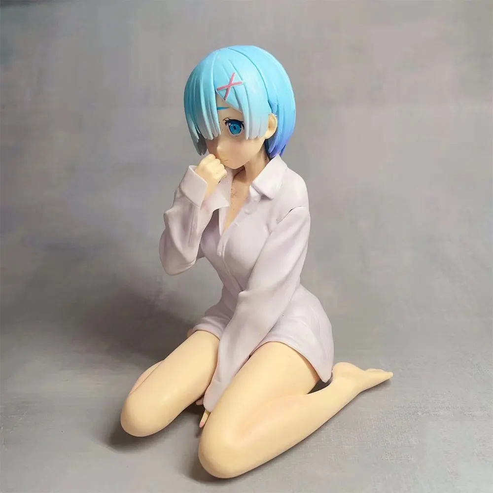 11CM Anime Life in another world from scratch Rem in white shirt sitting position anime model toys gift doll collection PVC