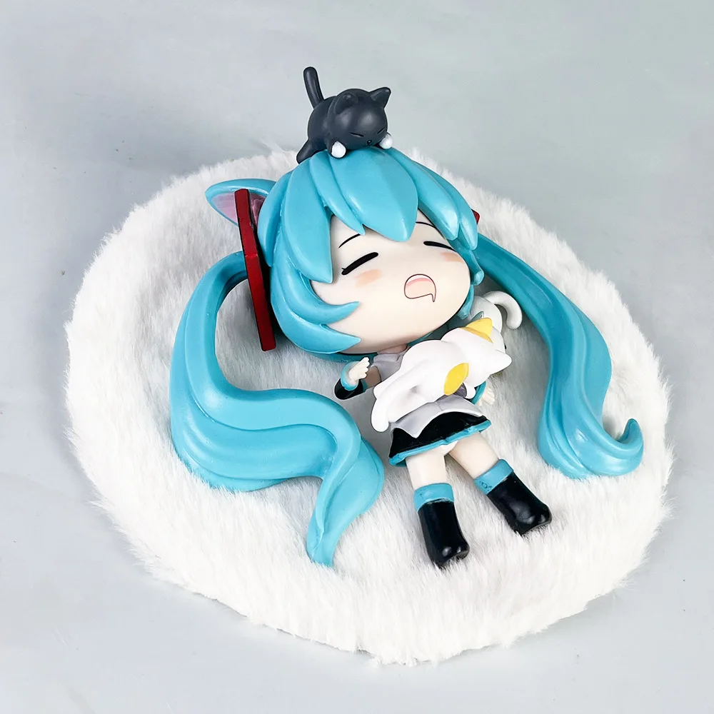 11CM Hatsune Miku Sleeping Anime Action Figurines Doll Desktop Ornament Kawaii Chassis Decor Kawaii Statue Model Trendy Toy Gift