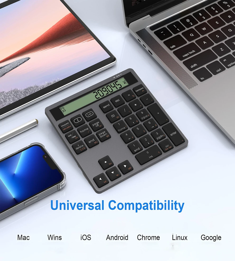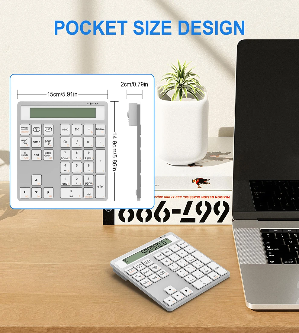 2.4G Wireless Bluetooth Numeric Keyboard with Screen Display Calculator 2 in1 Portable Wireless Number Keypad for Win/Mac