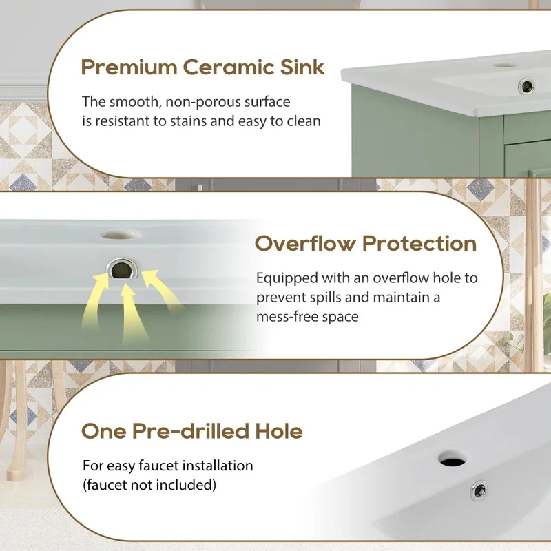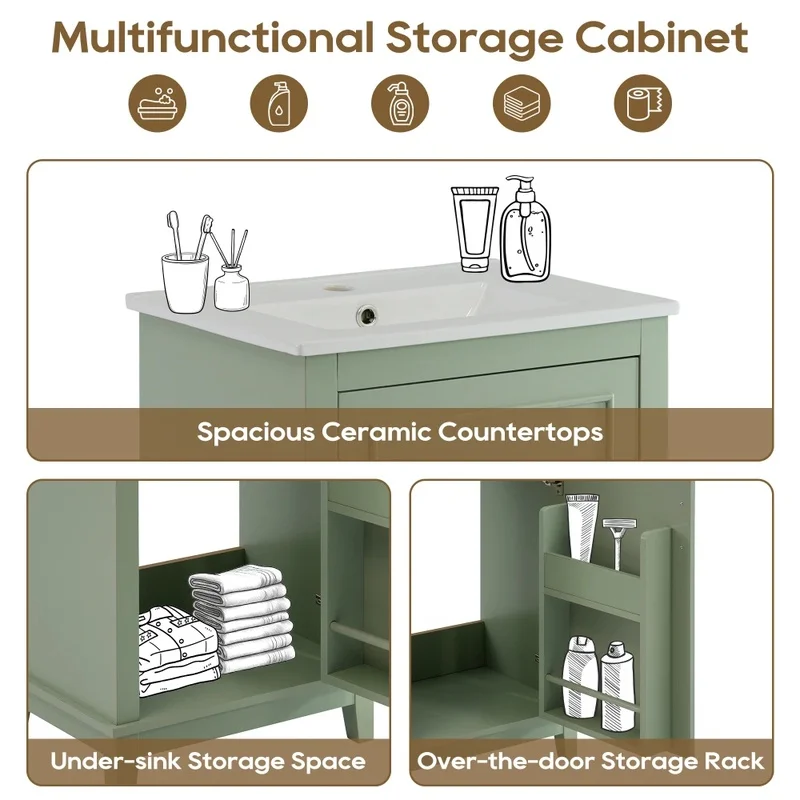 20 Inch Modern Small Bathroom Vanity Cabinet with Ceramic Basin, Ample Storage, Soft Close Door, Dimensions 20x15.5x33.3 Inches