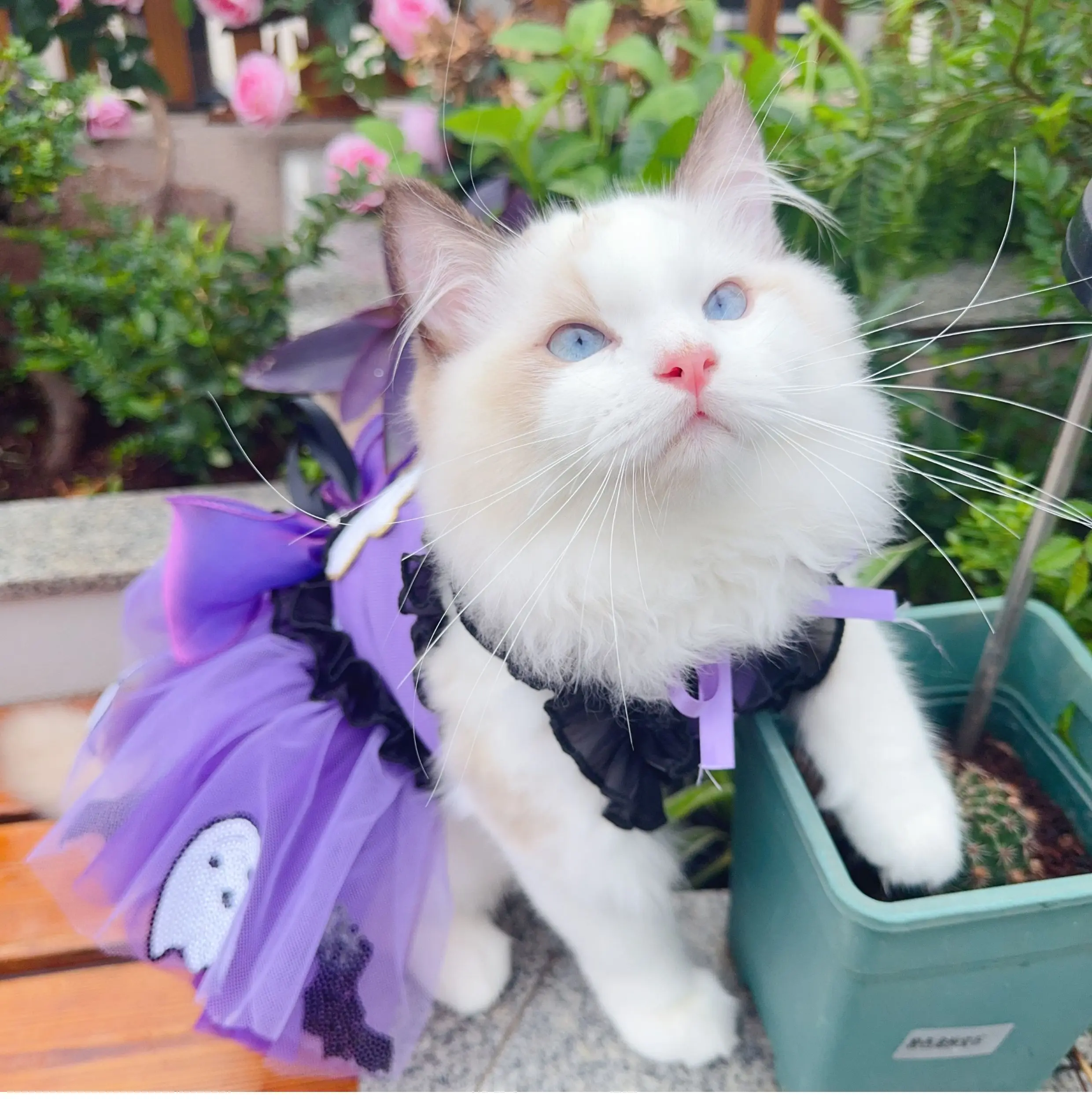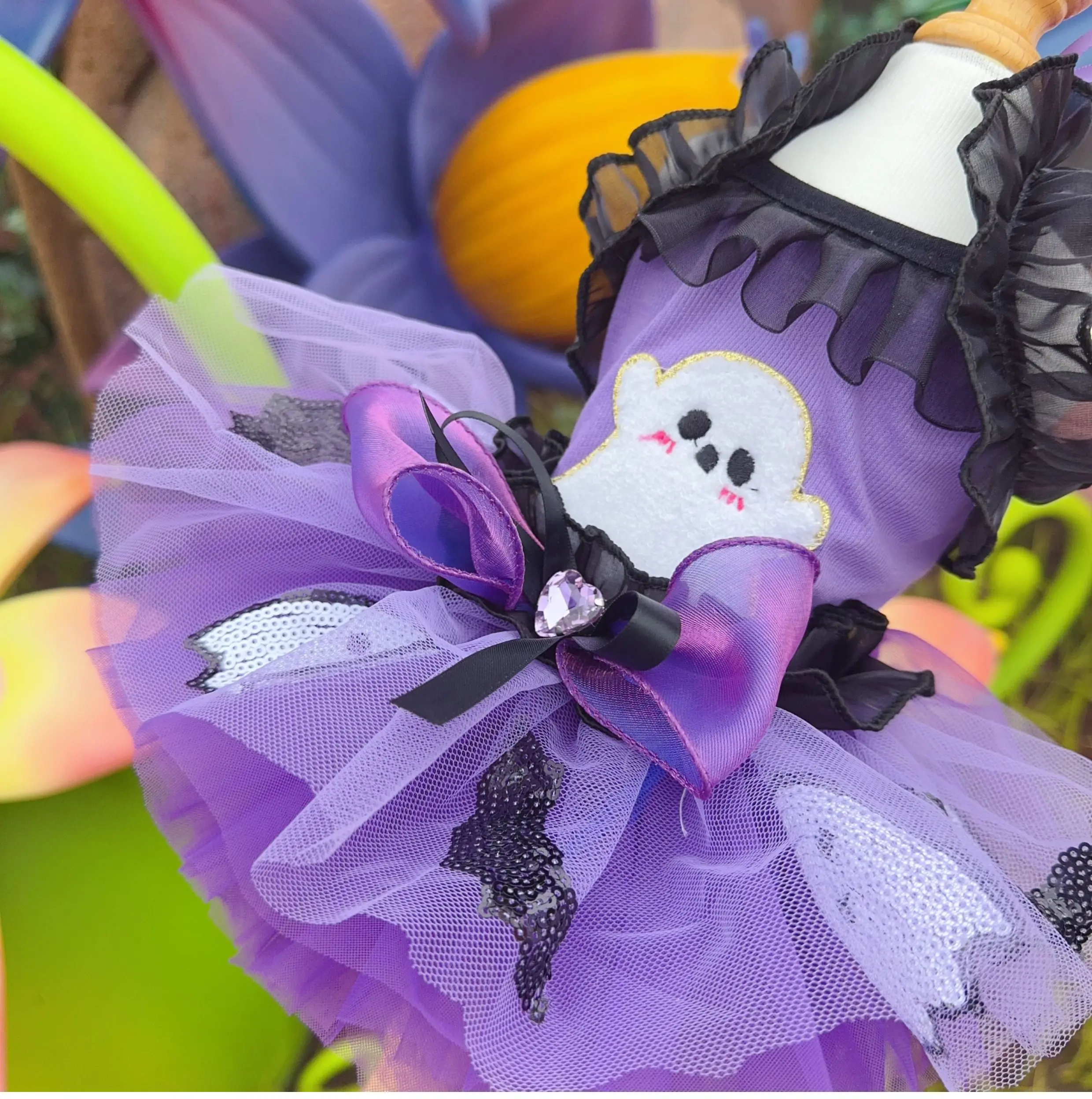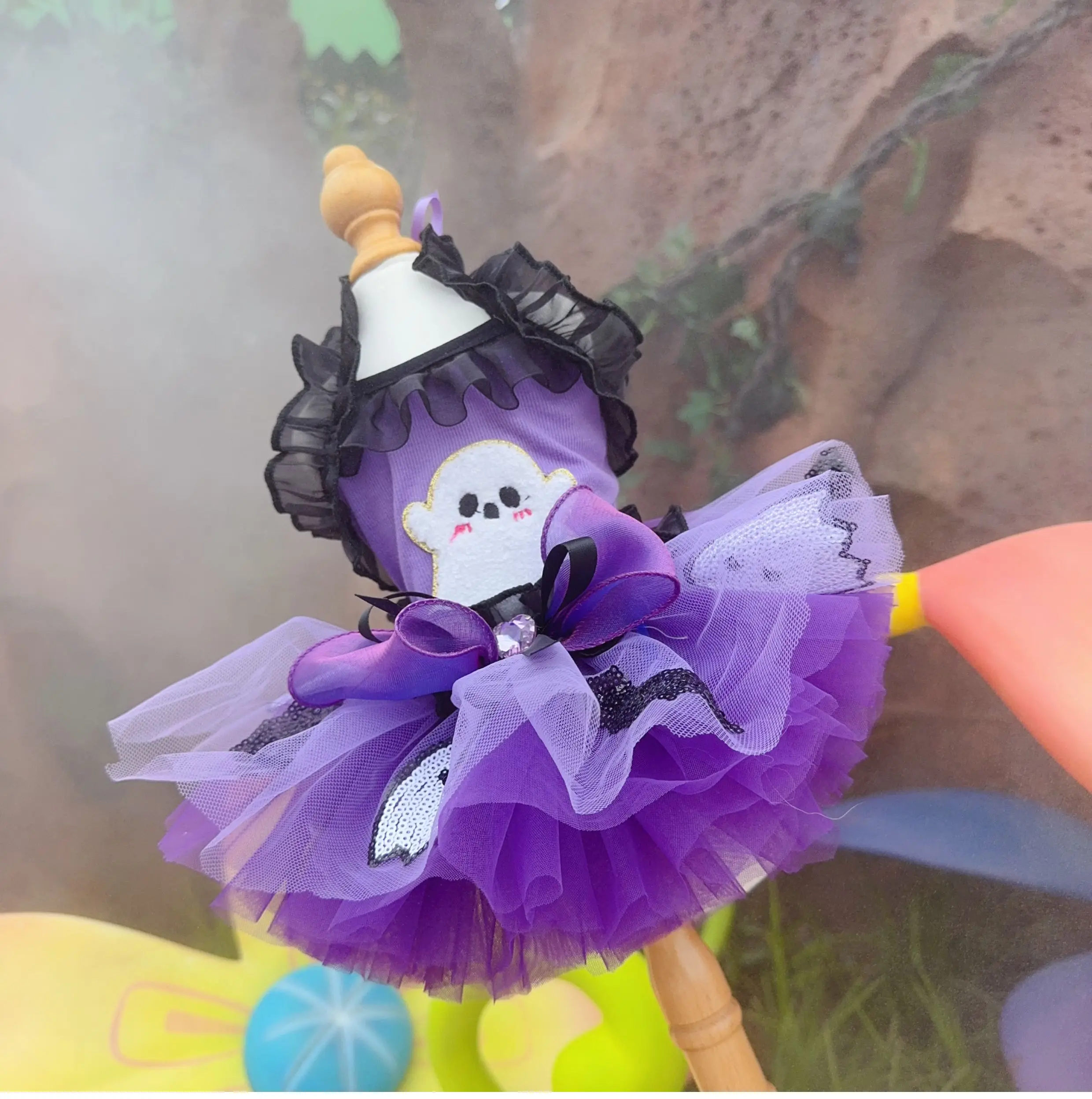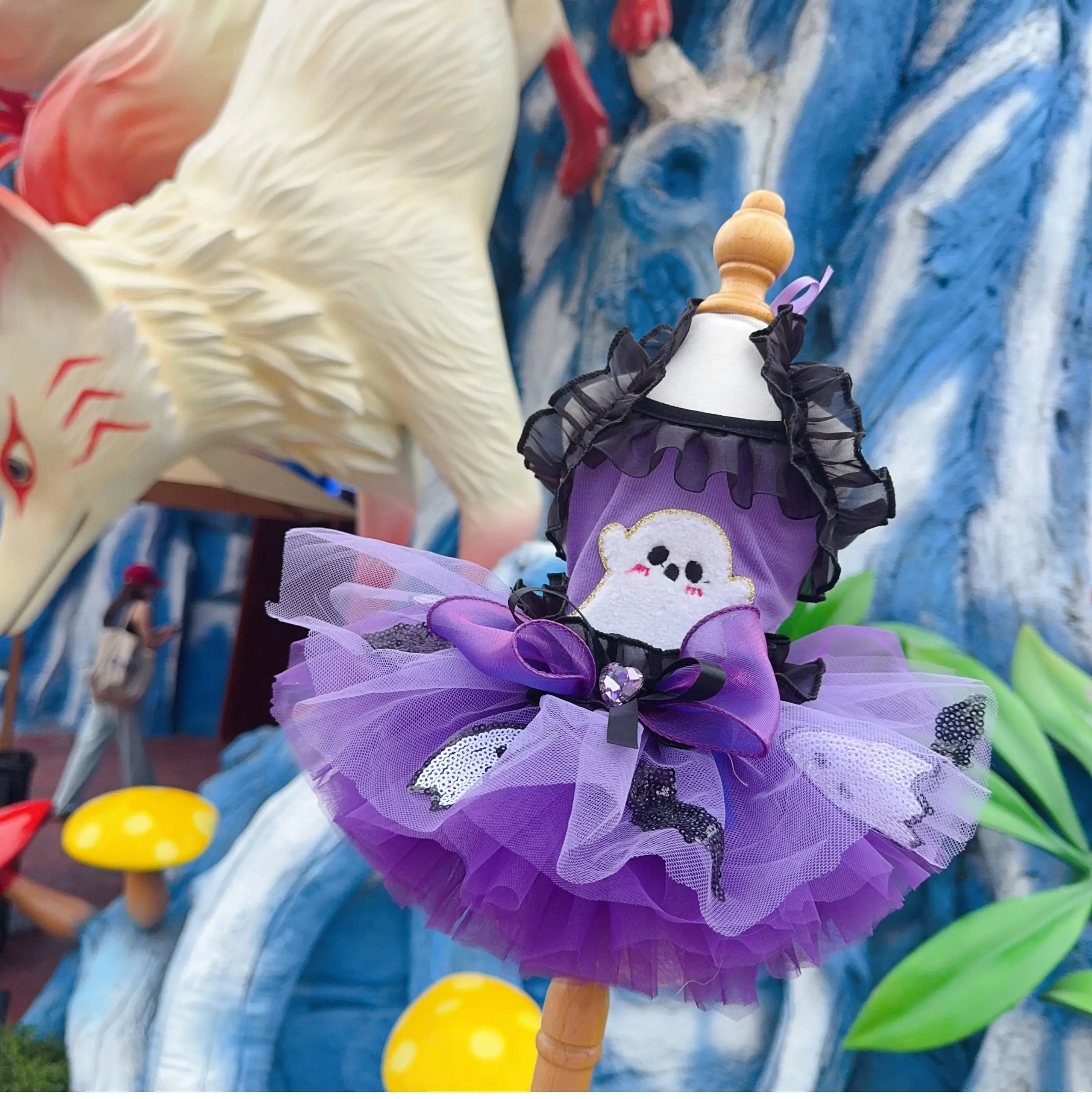 2025 Luxury Halloween Pet Dog Dress, Handmade Purple Ghost Bow Sling Princess Costume for Small Dog & Cat, Fashion Puppy Apparel