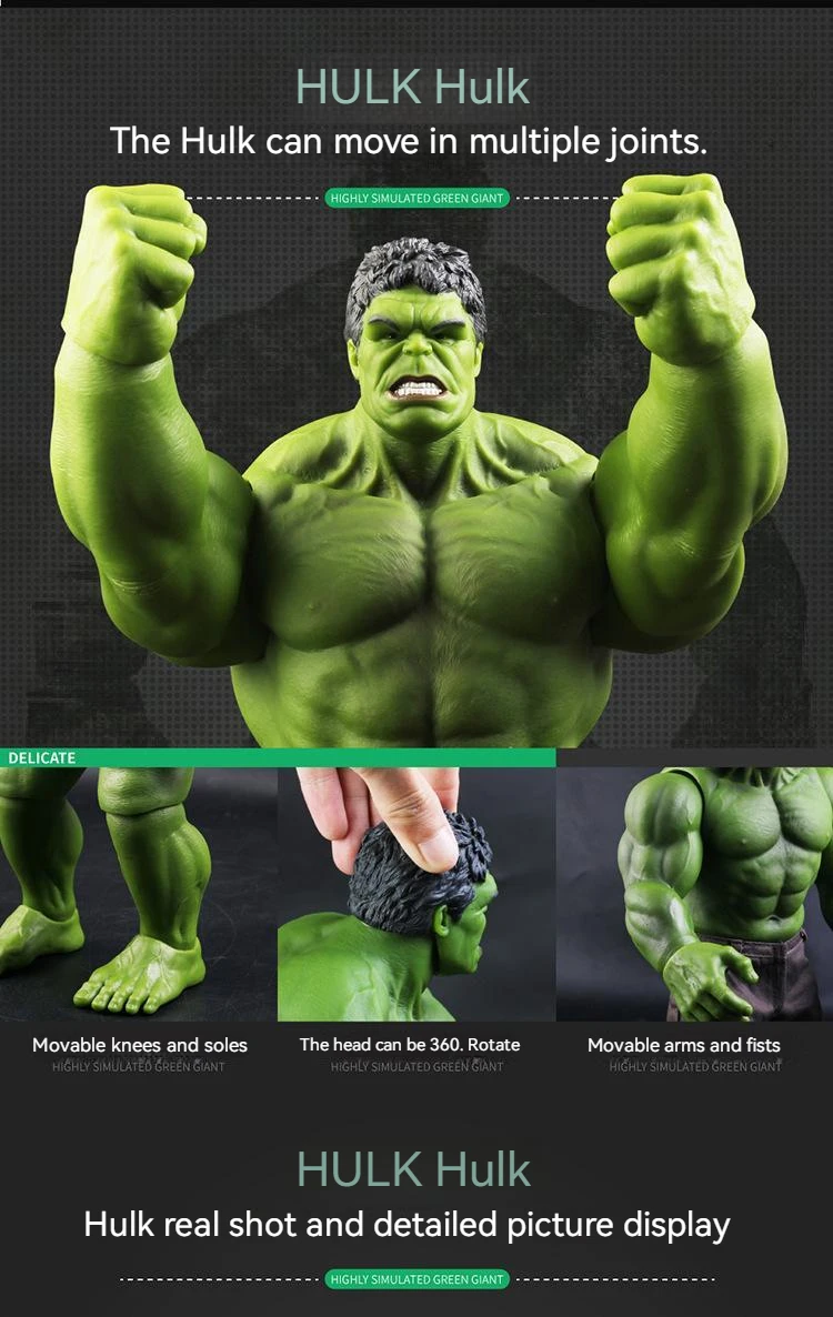 30/42cm Avengers Action Figures Hulk 360 Degree Head Rotation Model Move Joints PVC Collectile Desktop Decor Toy For Kids Gifts