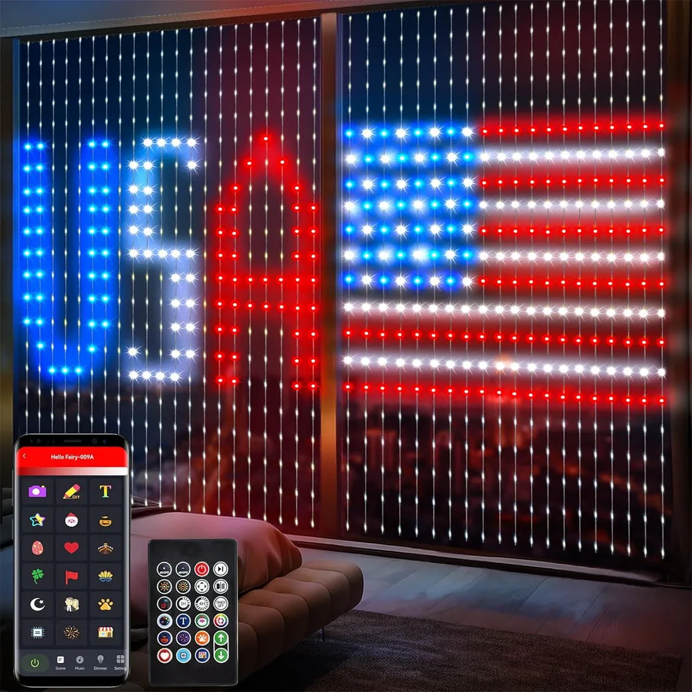 【Programmable Curtain Lighting】 The curtain lights outdoor indoor can create lights with any pattern and text through the LED APP. Perfect for write your lover's name and what you want to say to her during proposal, wedding and anniversary