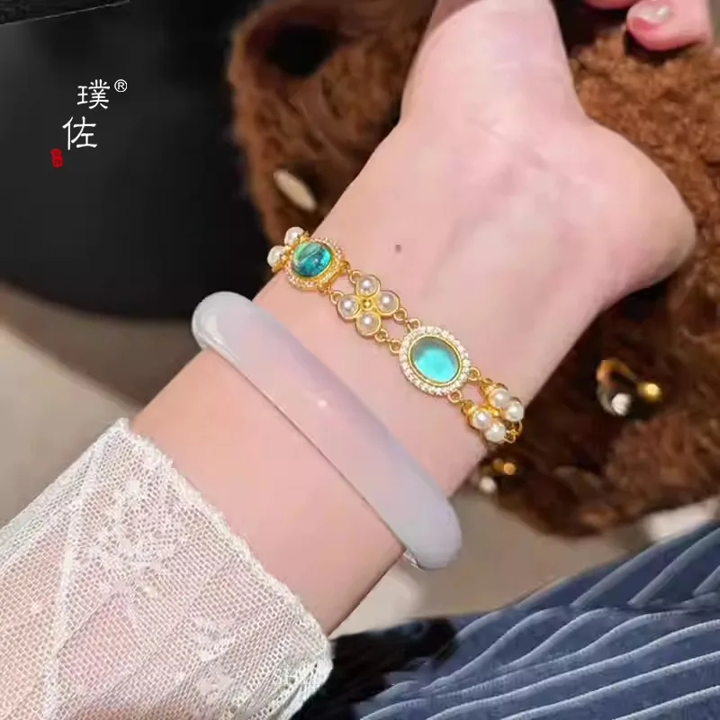 9999 24K real gold Double-layer Pearl Traditional Chinese style court bracelet for women with a light luxury temperament
