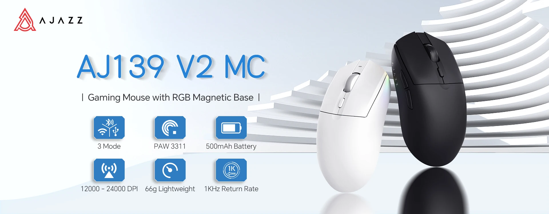 AJ179P/AJ179 PRO wireless mouse USB C comes with a magnetic light rechargeable base and built-in 400mAh battery, the light gaming mouse provides convenient charging at any time, ensuring long-term use without interruption. Customizable RGB lights make the desktop streamer more beautiful.