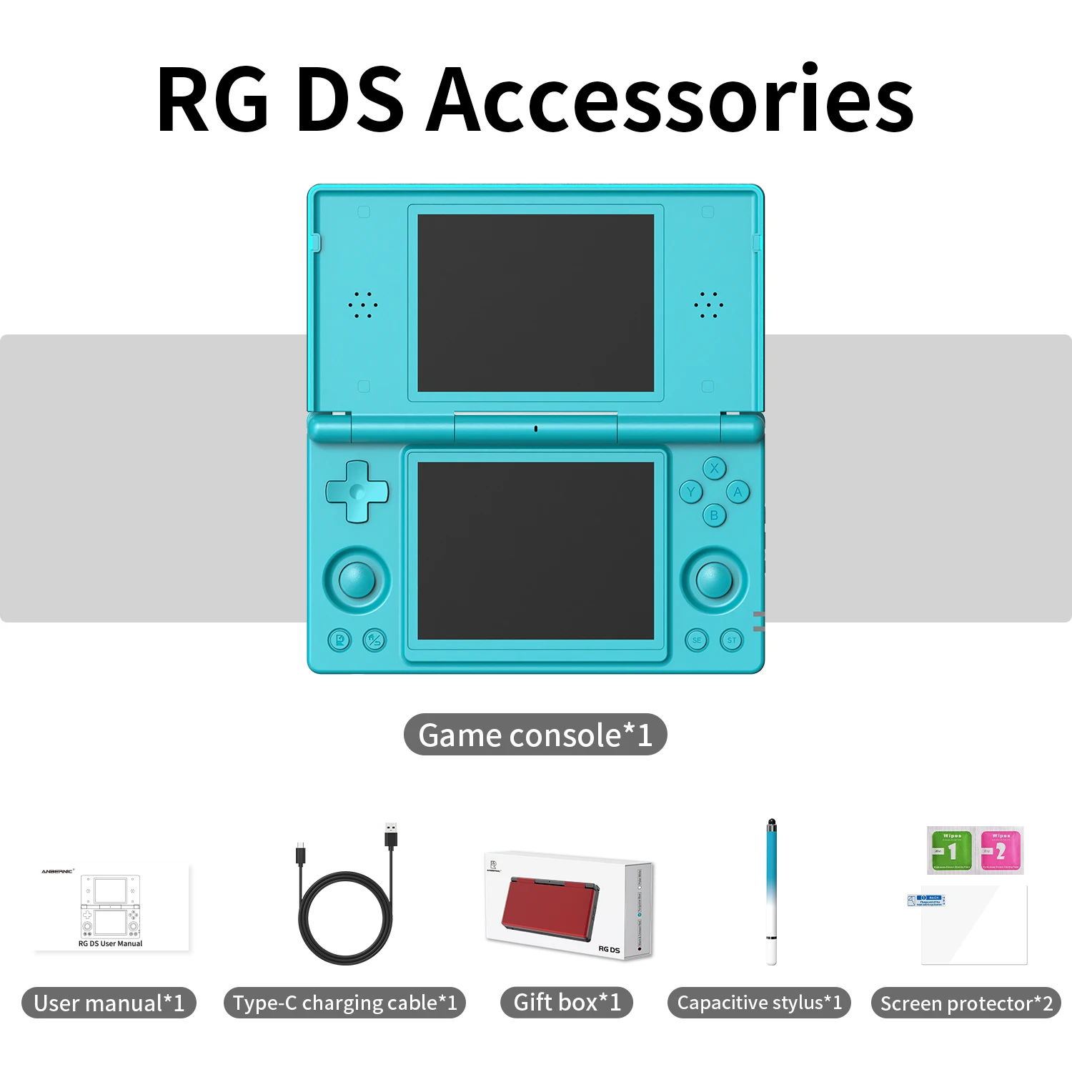 RG DS is ANBERNIC first dual-screen flip game console. It is equipped with an RK3568 Quad-core 64-bit Cortex-A55 processor and supports Android 14 system. It has a beautiful appearance and is the preferred portable game console for entertainment anytime and anywhere. It is also an exquisite gift for Christmas.There are three colors to choose from: Black & Crimson Red, Turquoise Blue, and Polar White. Which color do you prefer?