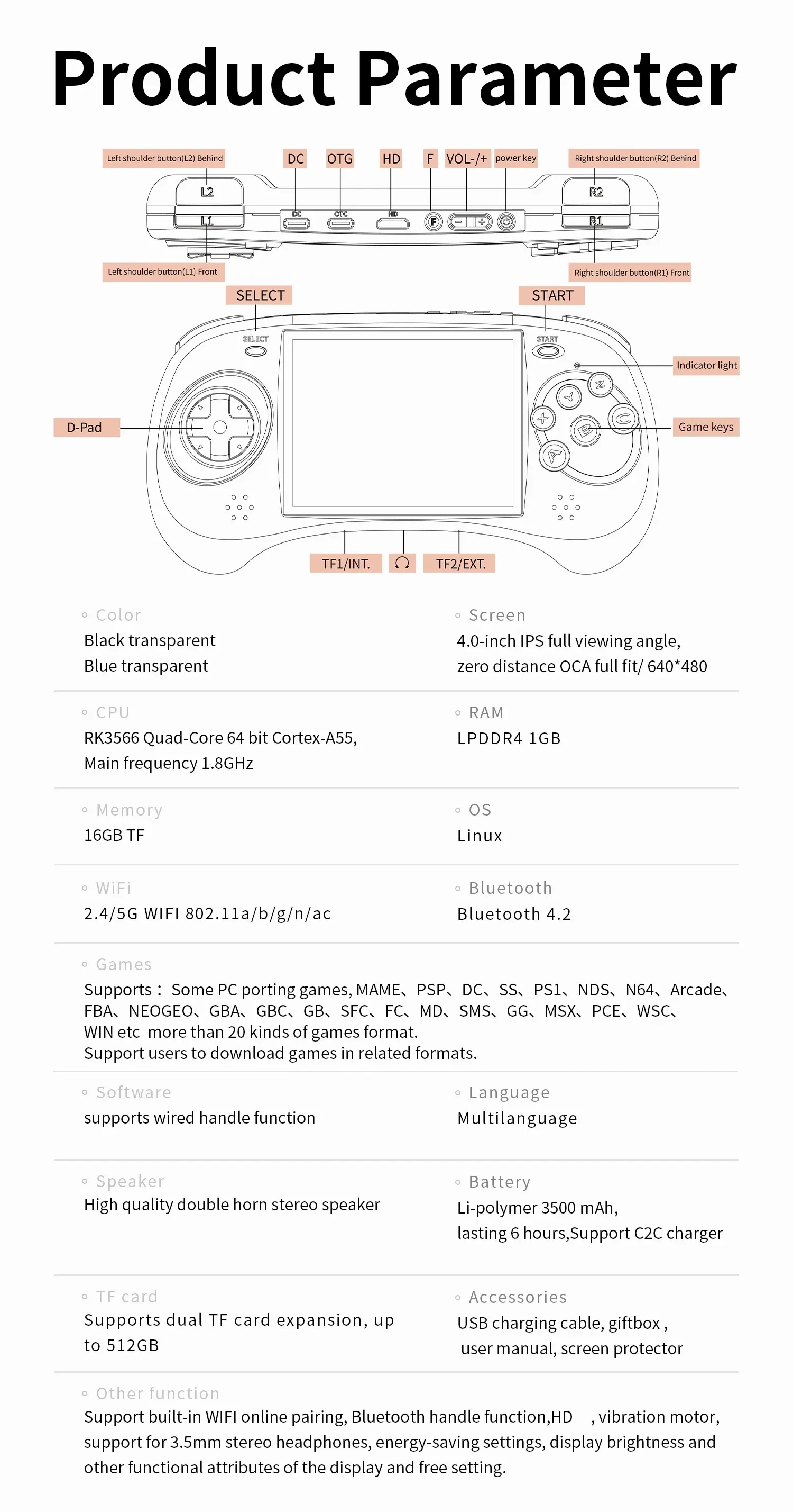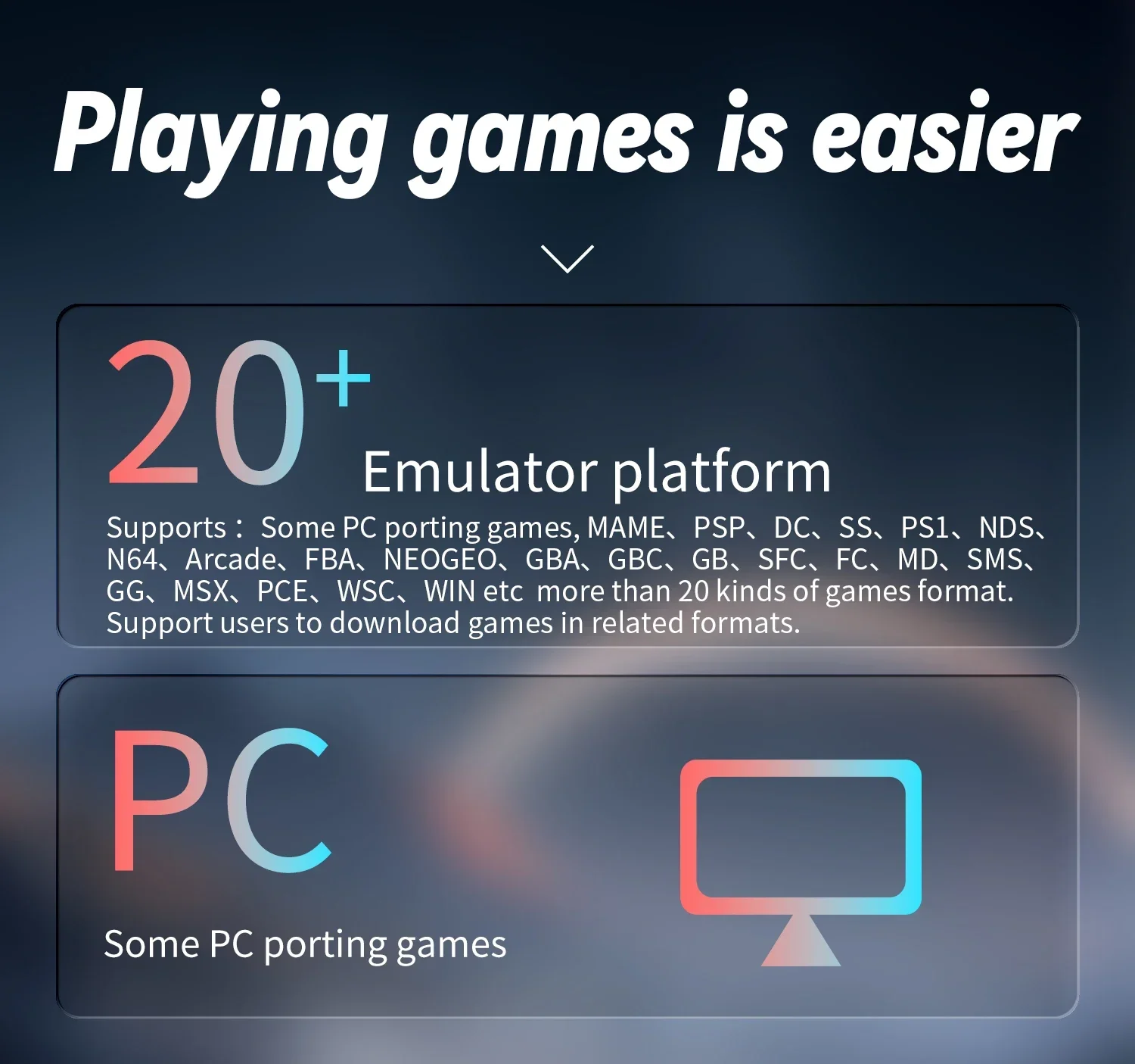 Supports: Some PC porting games,MAME,PSP,DC,SS,PS1,NDS.