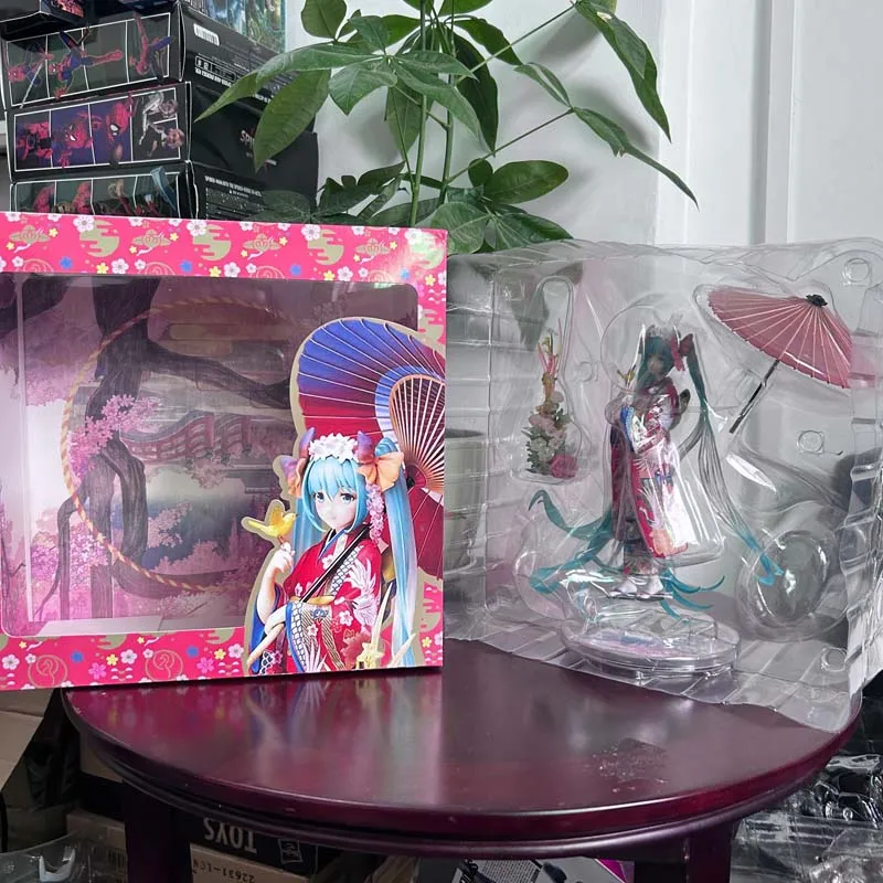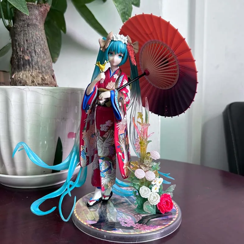 Anime umbrella Kimono Stronger Hatsune Miku Figure Girl Statue Toys Gift Kawaii Cute Doll Desktop Ornament Christmas Present