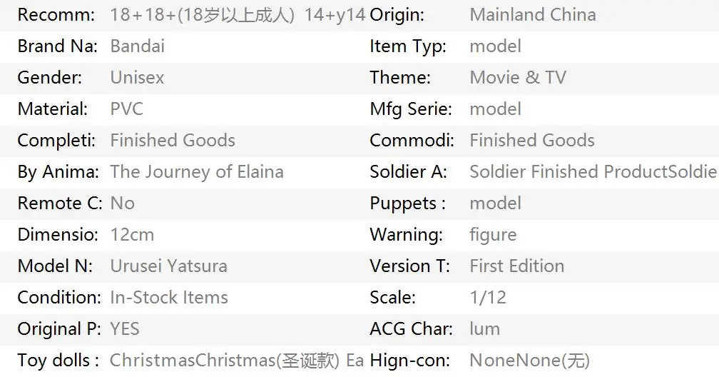 Anime Urusei Yatsura Lum Girls Action Figure Toys 12CM