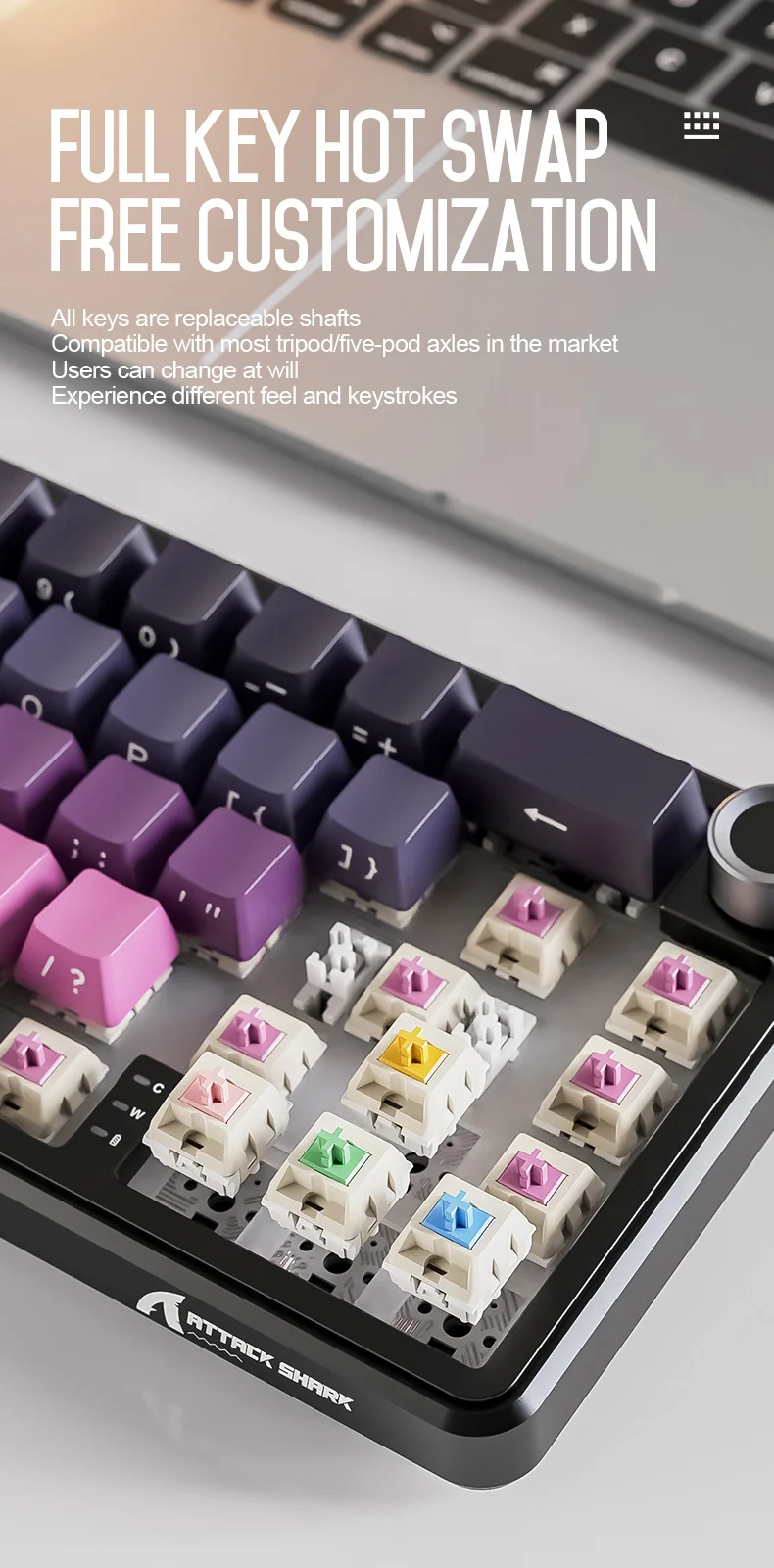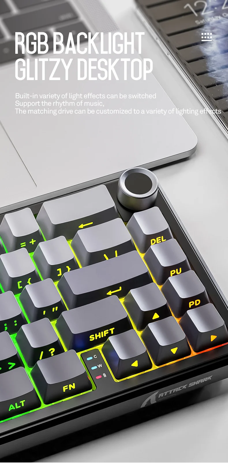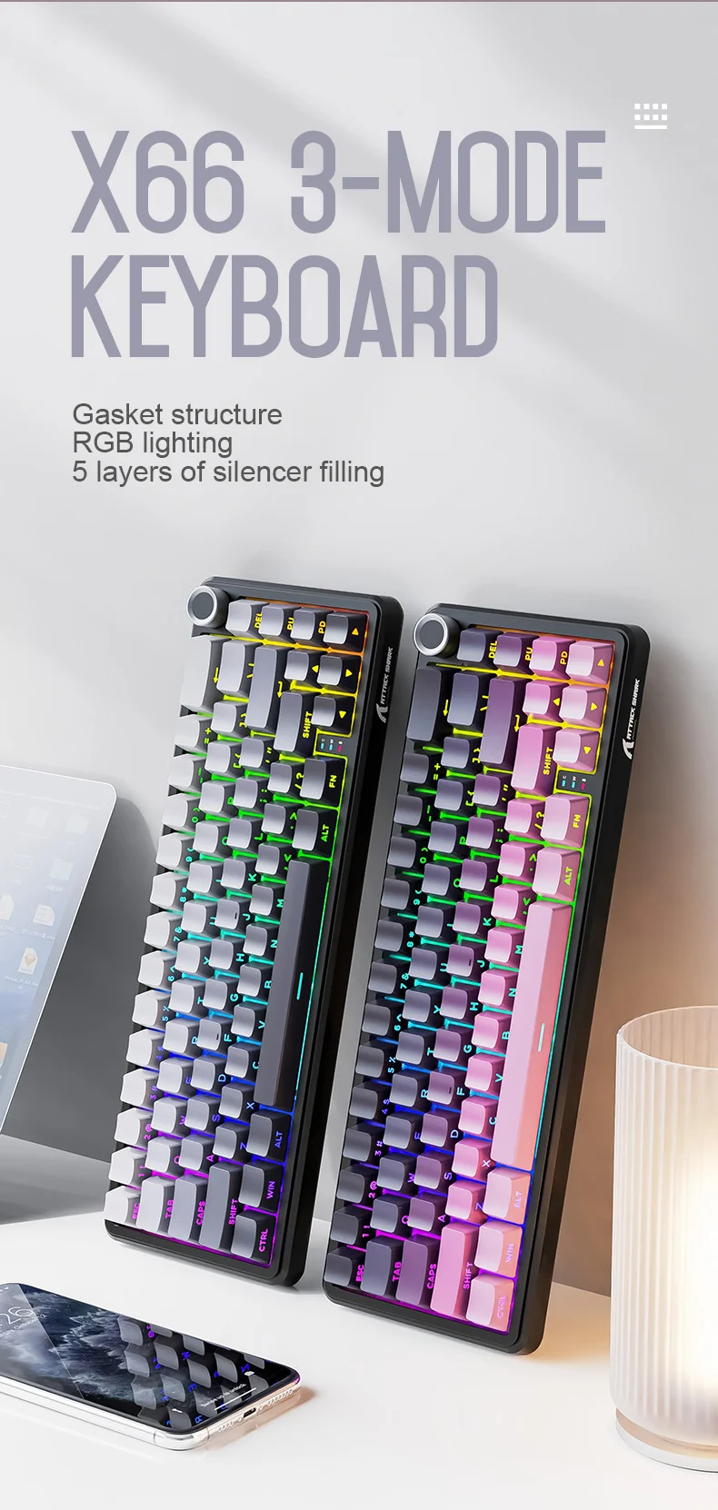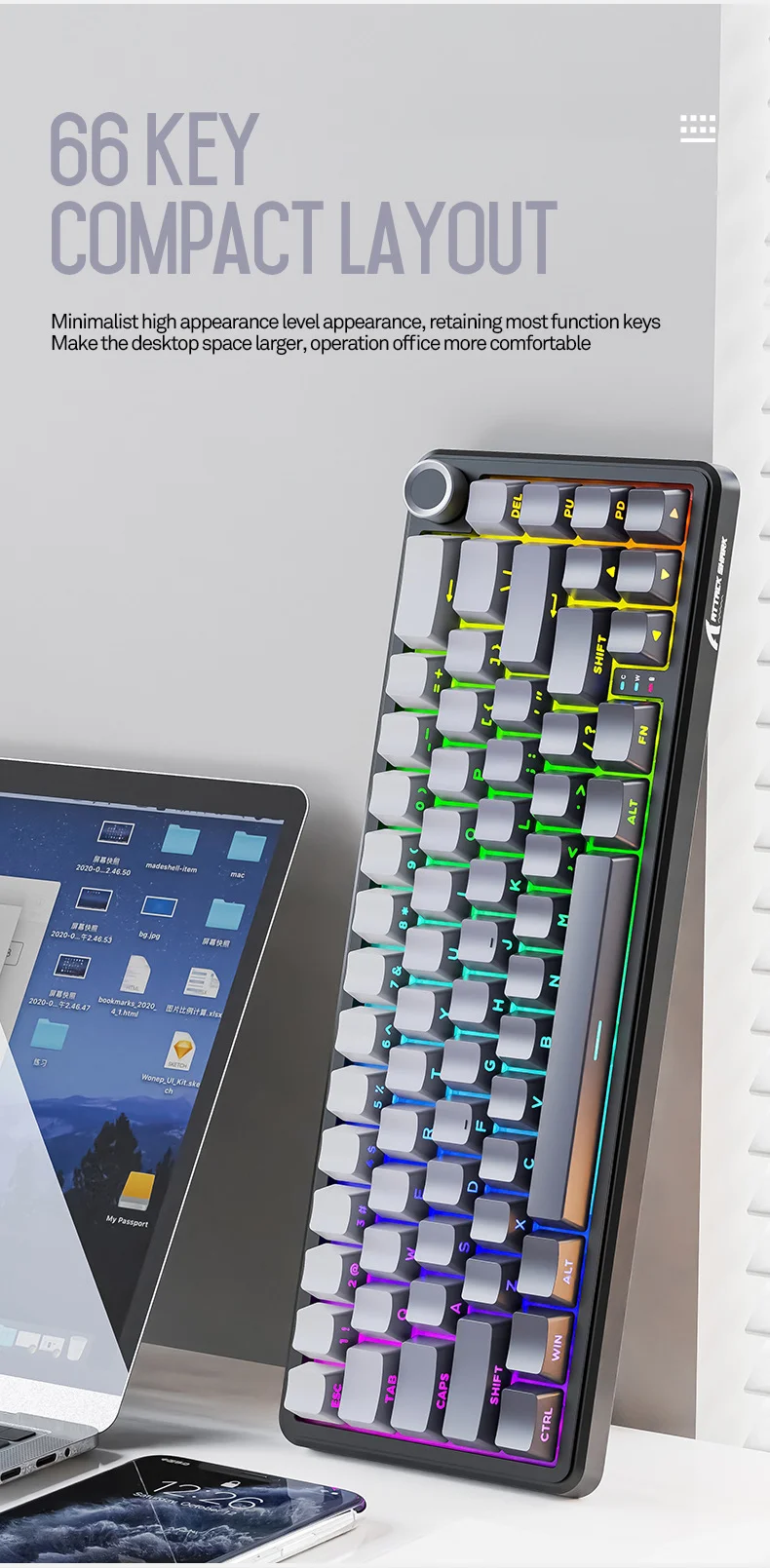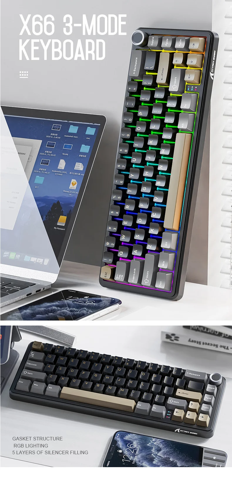 Attack Shark X66 Wireless Mechanical Keyboard,RGB Lighting,Hot-swappable,Metal Knobs,Suitable for FPS. games,Win&Mac