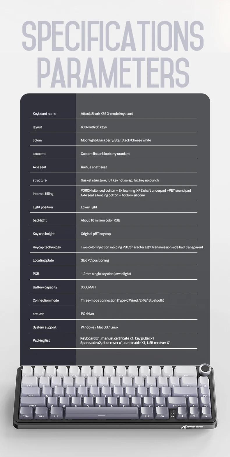 Keyboard name: Attack Shark X66 3-mode keyboard