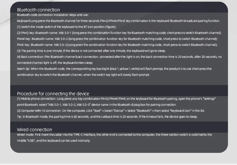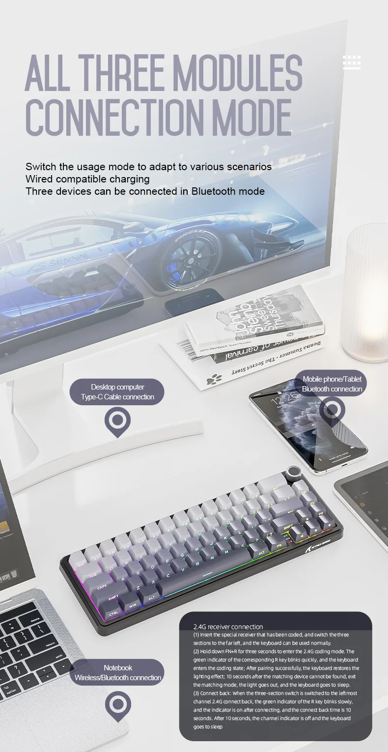 Connection mode: Three-mode connection(Type-C Wired/2.4G/Bluetooth)