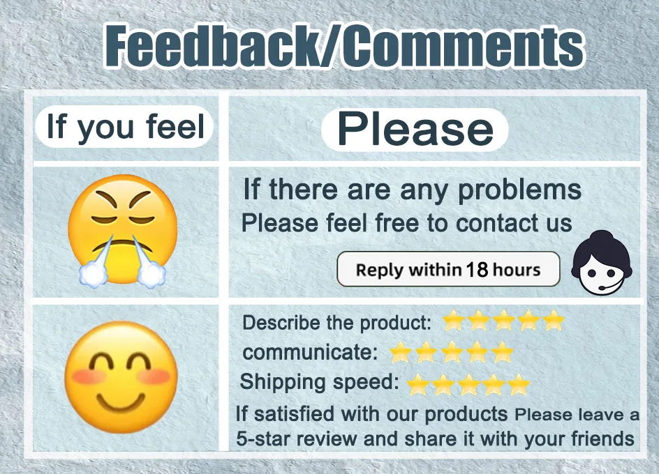 Contact us: lf you have any problems after receiving your packagePleasetake a picture to contact our customer serviceΒ