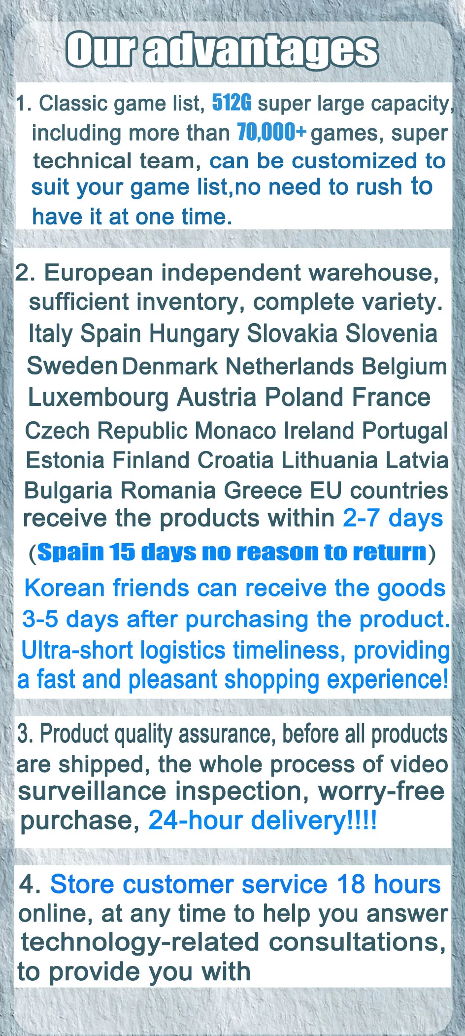 1. Original classic game list, with a super capacity of 512G , containing 60K games , and collecting and integrating super-complete game collections, which can be owned at one time without running around.