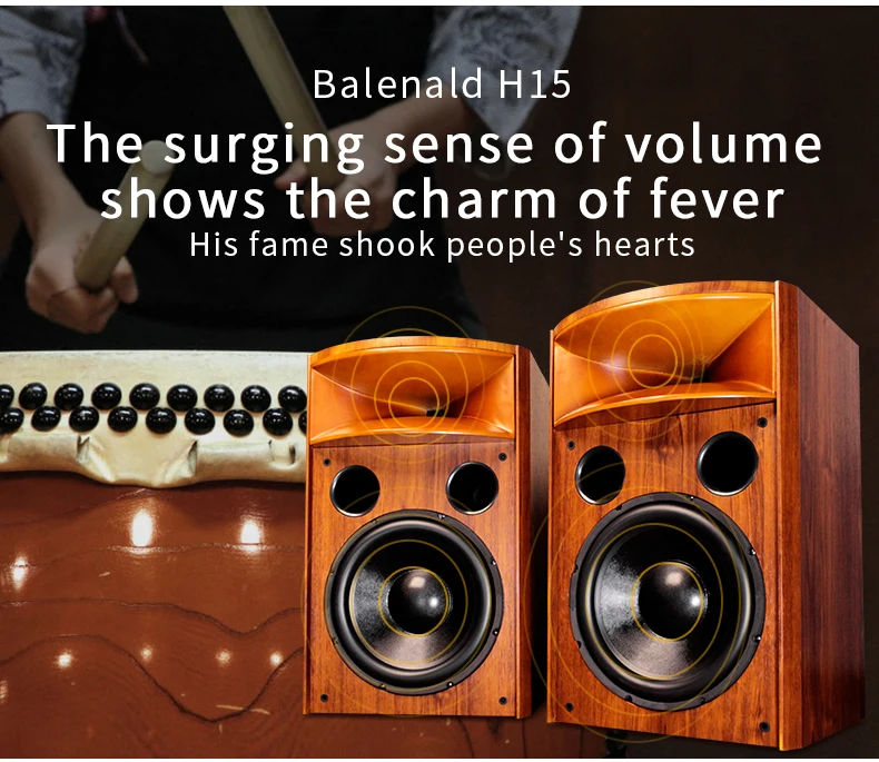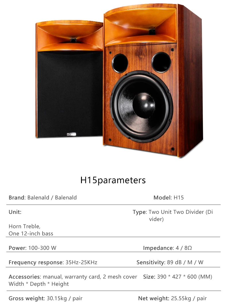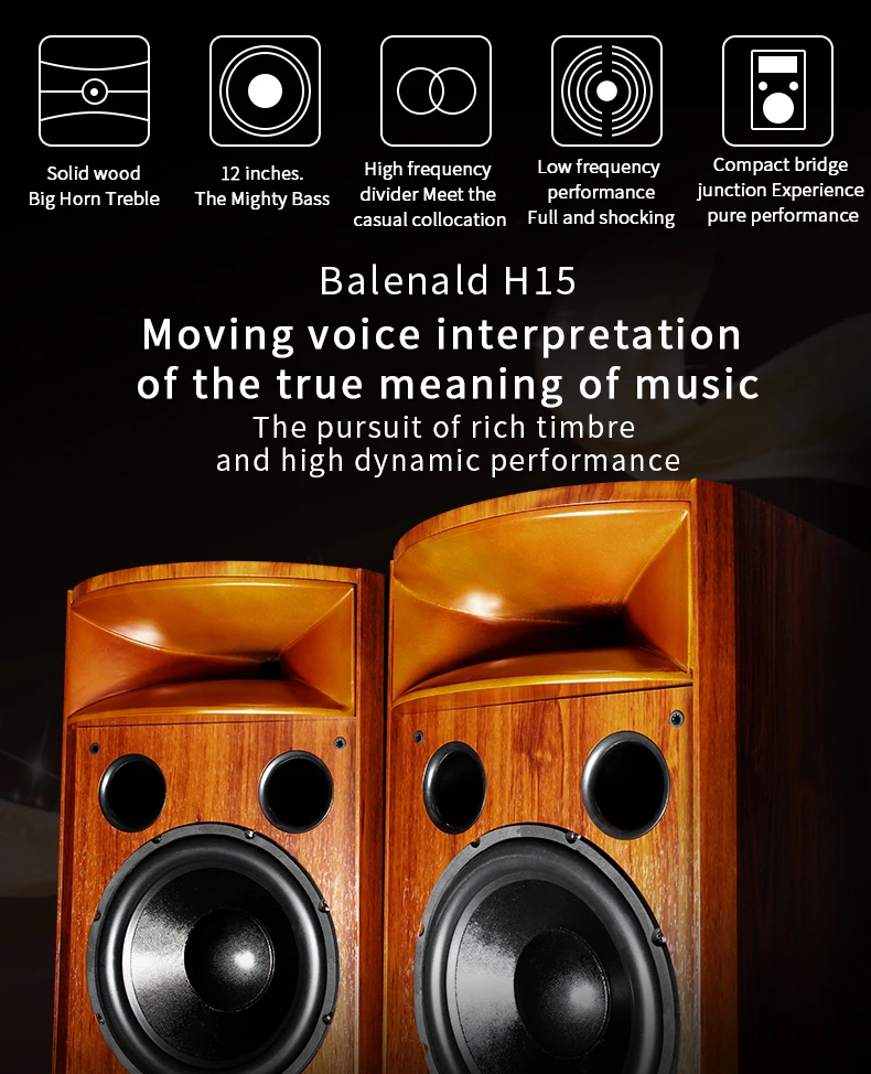 Balenald speaker H15 fever-grade bookshelf speaker solid wood horn 12-inch speaker ND68 and X9 amplifier hifi combination audio
