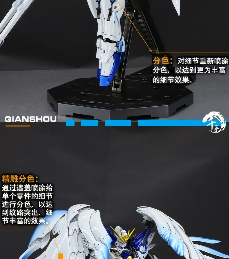 Bandai  MG 1/100 Ice Blue Angel FLYWING ZERO TITANUM FINISH Model Kit Anime Action Fighter Assembly Models Collection Kids Gift