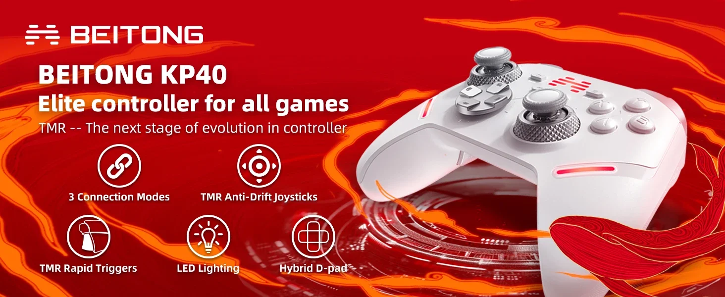 Beitong KP40 Elite Wireless Controller with TMR Joysticks with Bluetooth Gamepad for PC, Switch and Mobile