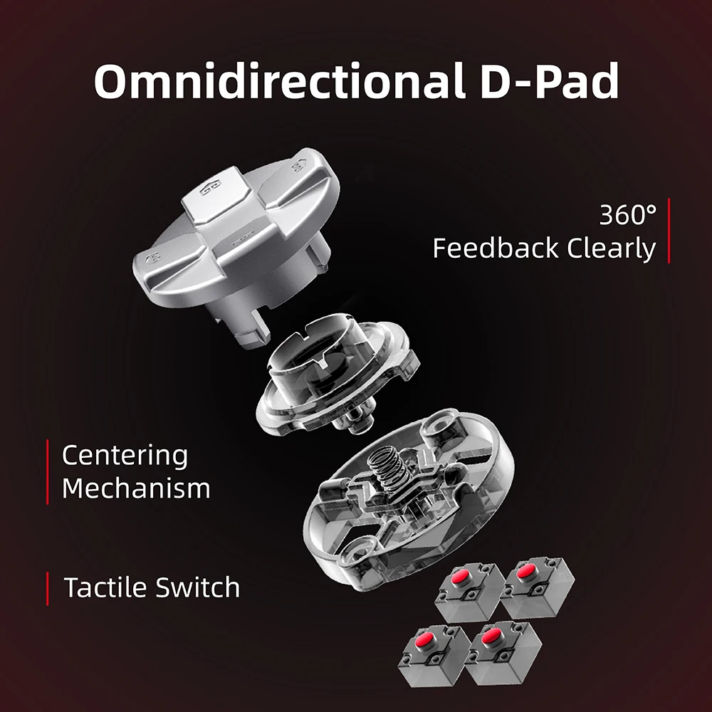 Equipped with a custom Hybrid D-Pad, offering 8-direction sensitivity and precise feedback for easy control,