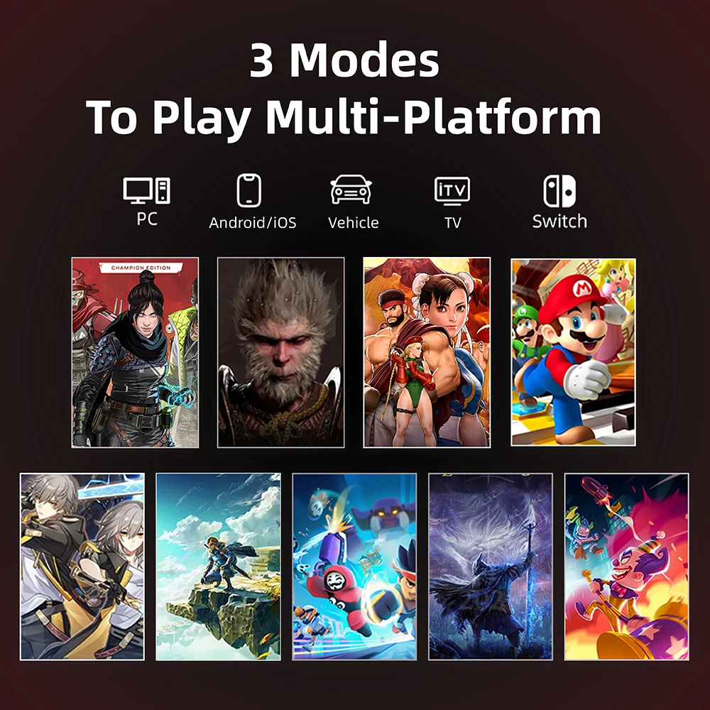 Works with PC, Switch, Steam, iOS, and Android, easily switch between modes with back platform button.