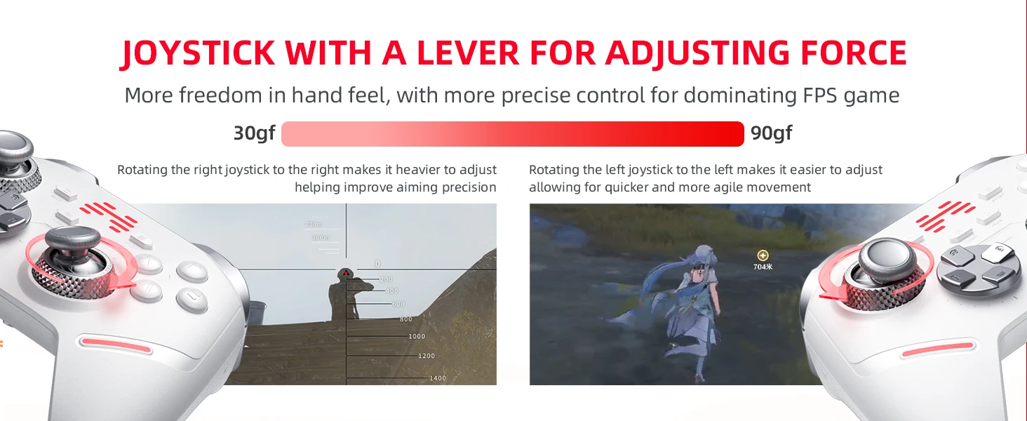 TMR joysticks combine the durability, precision and low power with adjustable the tension easily by turning the force ring during gameplaying to find your perfect feel (30-90gf).