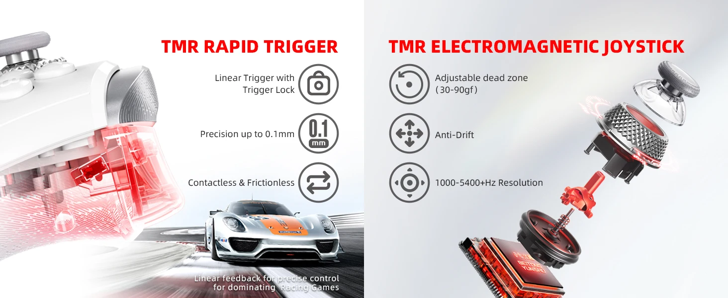 Whether you're FPS or racing, linear TMR triggers keep you ahead, you'll get faster response times, ensures a seamless gaming experience