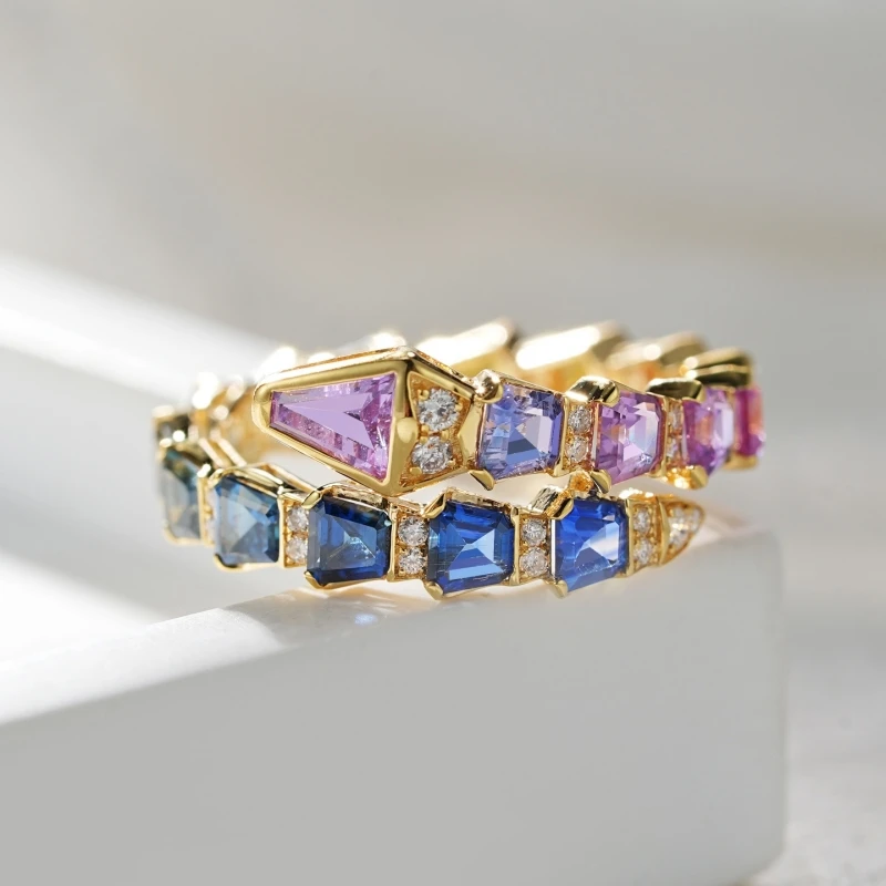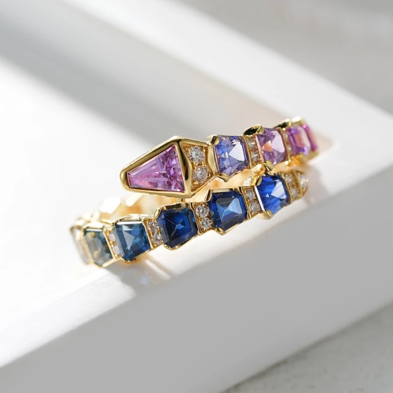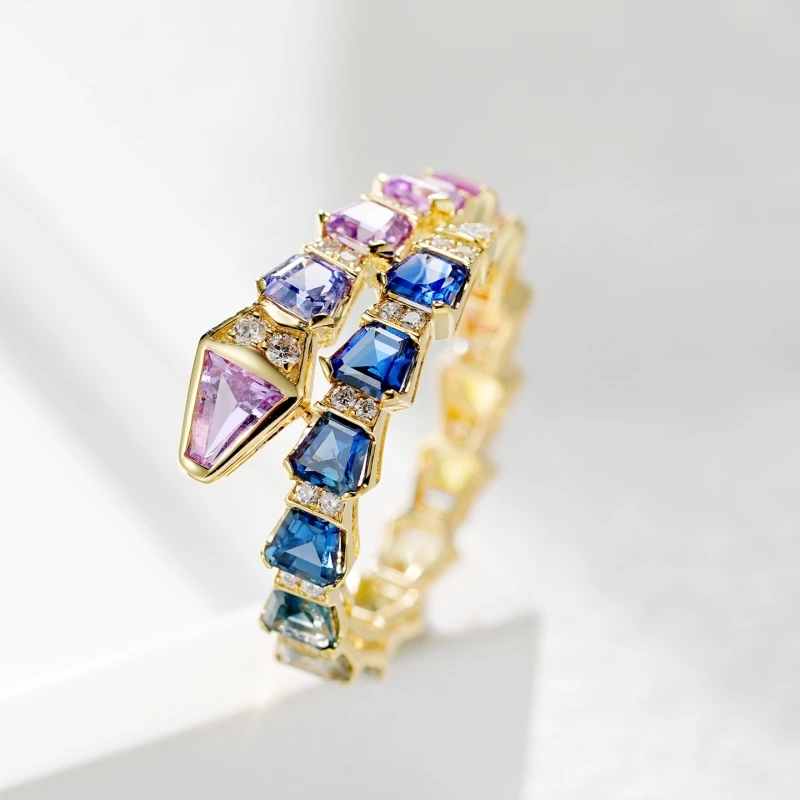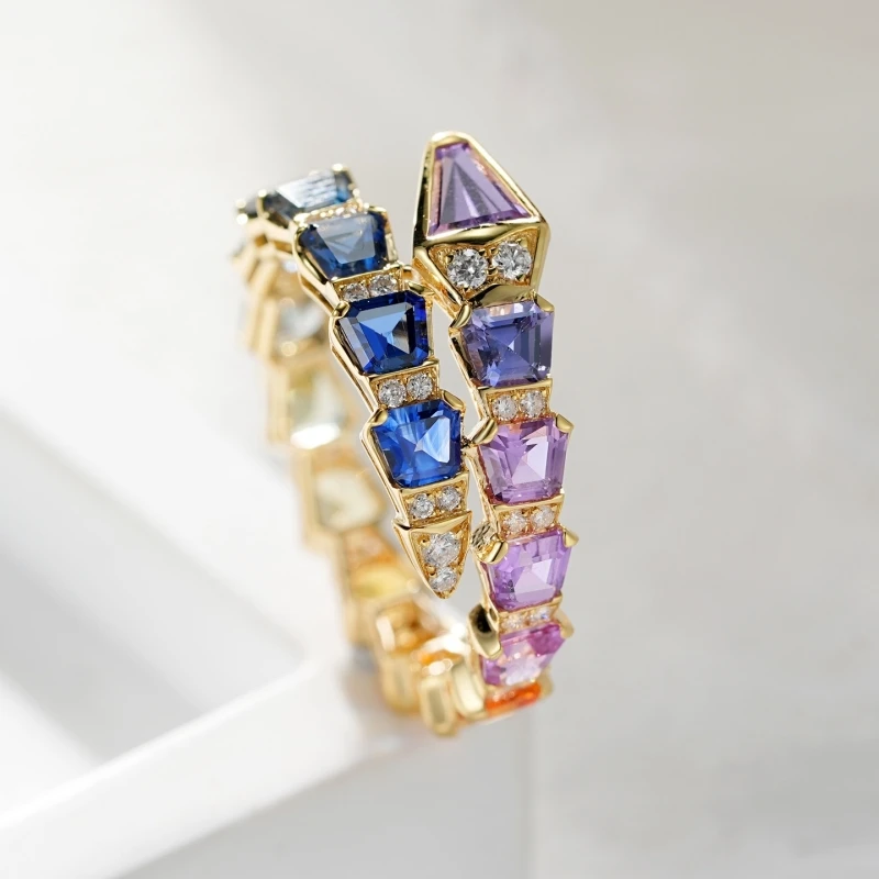 BELLUX Fine Jewelry Customized 18k Gold Material Set Natural Colored Gemstone Snake Shaped Full Diamond Ring